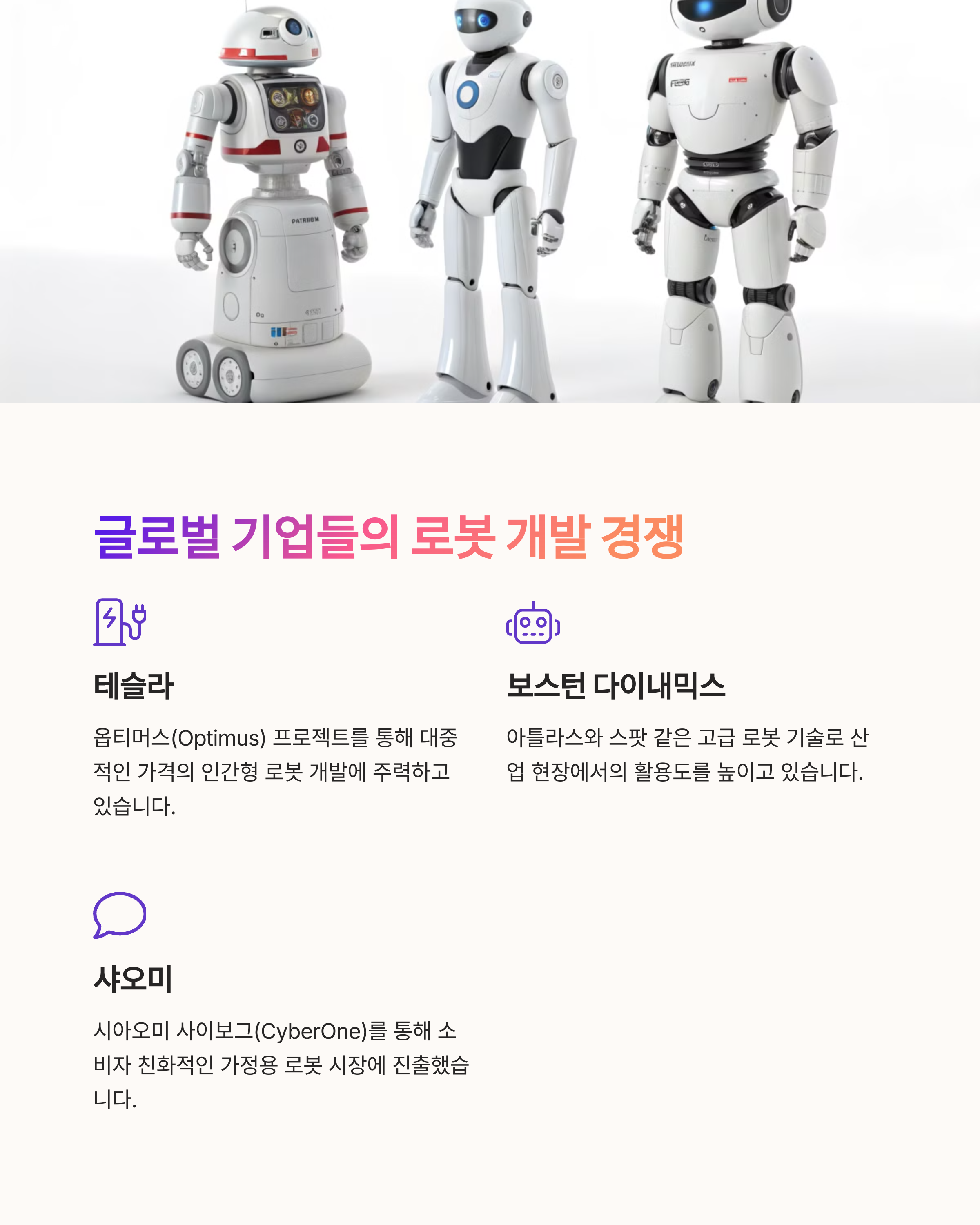 기업명 대표 로봇 특징