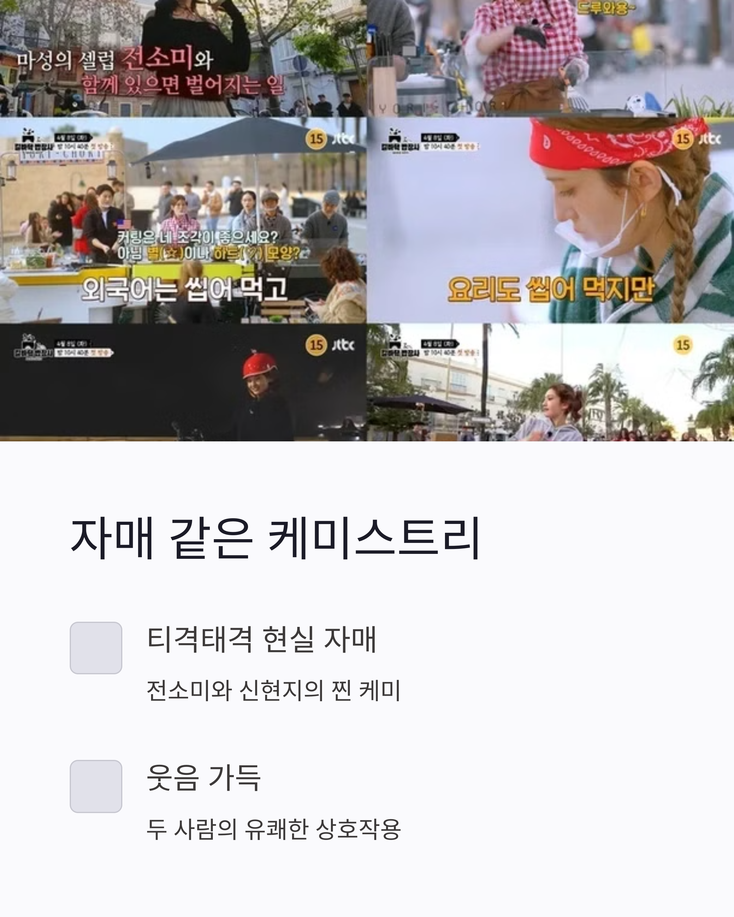 방송 시작 전부터 기대를 모았던 조합, 전소미와 신현지. 그런데 실제 방송을 보면 ‘케미’라는 단어보다 ‘신경전’이라는 표현이 더 어울릴 정도예요. 전소미는 밝고 직설적인 스타일이고, 신현지는 패션모델 출신답게 깔끔한 성향. 그러다 보니 메뉴 조율이나 역할 분담에서 자주 충돌해요.