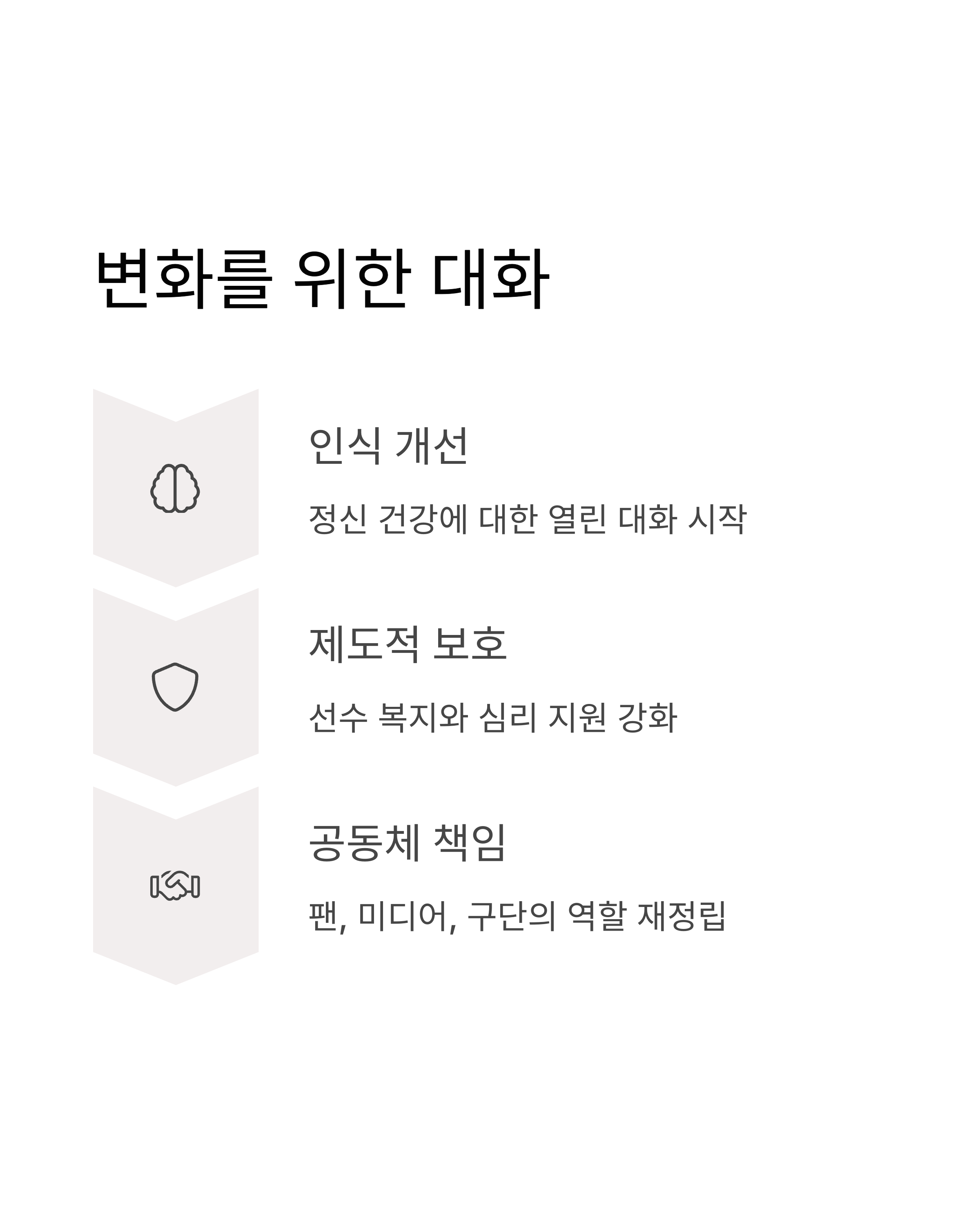 | 정신 건강 인식 | 선수 심리 지원 캠페인 참여 |
