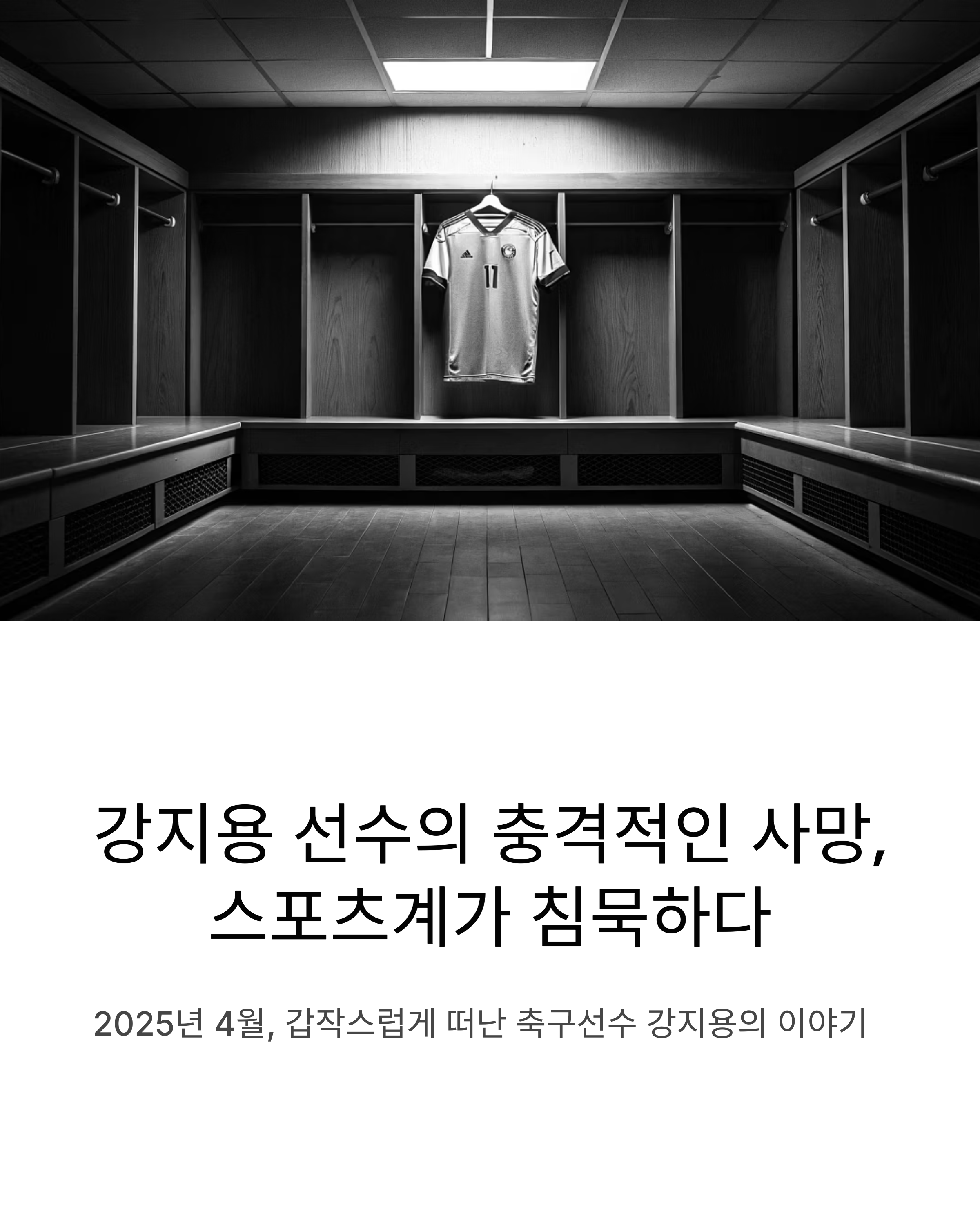 2025년 4월, 축구 팬들의 마음을 아프게 하는 안타까운 소식이 들려왔습니다. 전 축구 국가대표 골키퍼 강지용의 갑작스러운 사망 소식이 전해지며 축구계 전반에 깊은 슬픔이 퍼지고 있습니다.