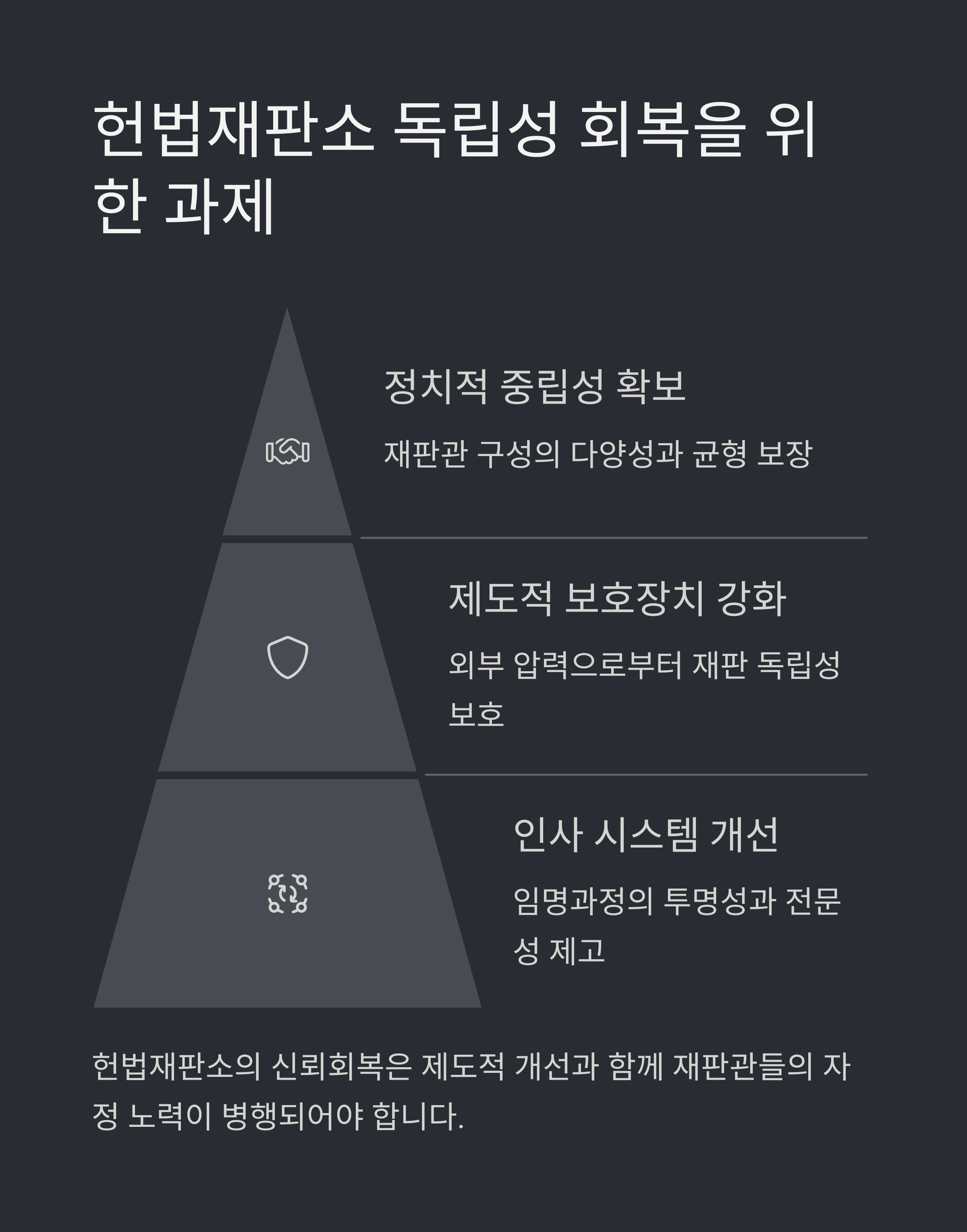 개별 인물보다는 헌재 전체의 독립성과 균형성 유지 여부에 주목하며, 신중하게 지켜보는 태도가 필요합니다.