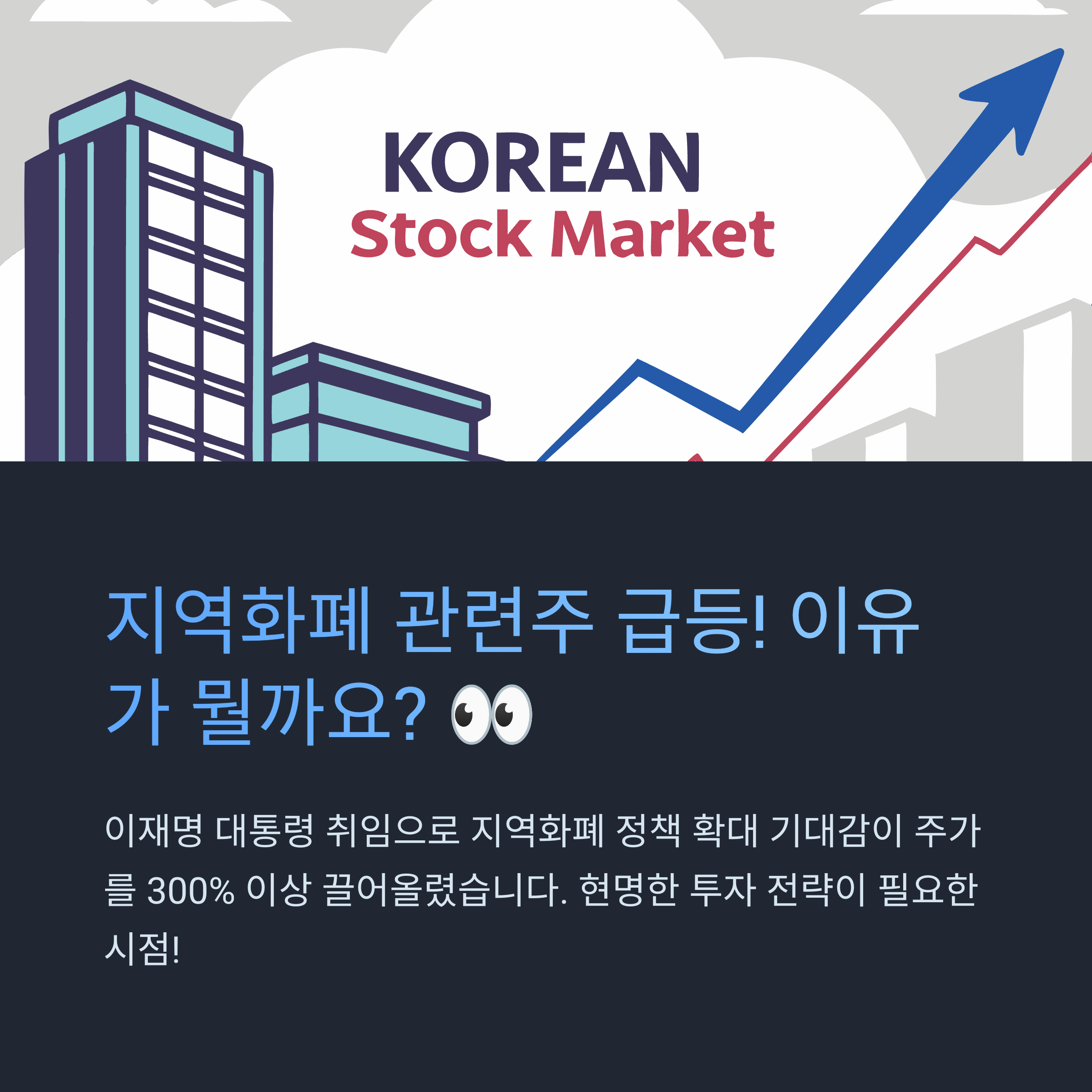 안녕하세요! 요즘 주식시장에 뜨거운 감자로 떠오른 지역화폐 관련주, 다들 관심 있으실 것 같아요. 저도 최근에 이 소식을 듣고 '어? 이게 무슨 일이지?' 싶었거든요. 새 정부 출범과 맞물려 갑작스럽게 주목받기 시작한 이 테마, 과연 얼마나 더 날아오를 수 있을까요? 그리고 우리는 어떻게 이 흐름을 타야 현명한 투자를 할 수 있을까요? 😊