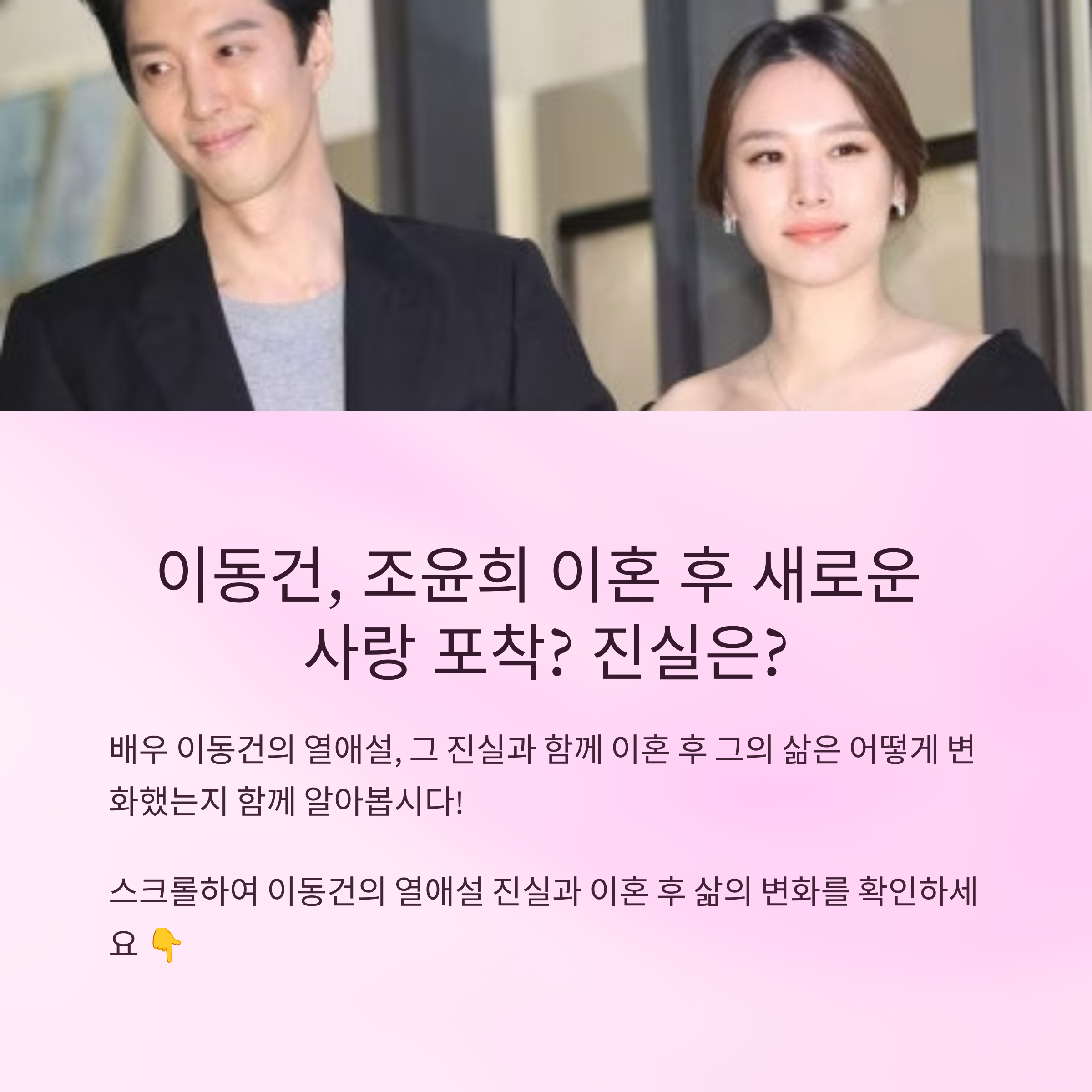안녕하세요! 요즘 연예계 소식들 보면 하루가 멀다 하고 깜짝 놀랄만한 이야기들이 쏟아져 나오잖아요. 특히 스타들의 이혼과 재혼, 그리고 새로운 만남에 대한 이야기는 언제나 많은 분들의 궁금증을 자아내는 것 같아요. 솔직히 저도 그렇고요! 😊 얼마 전, 배우 이동건 씨의 열애설이 터지면서 또 한 번 세간의 이목이 집중됐었죠. 조윤희 씨와의 이혼 후 그의 행보에 많은 관심이 쏠렸던 터라, 이번 열애설 보도는 더 큰 화제가 된 것 같습니다. 과연 이동건 씨의 새로운 사랑은 사실일까요? 이혼 후 그의 삶은 어떻게 흘러가고 있을까요? 오늘 이 모든 궁금증을 함께 풀어보는 시간을 가져보려 해요.