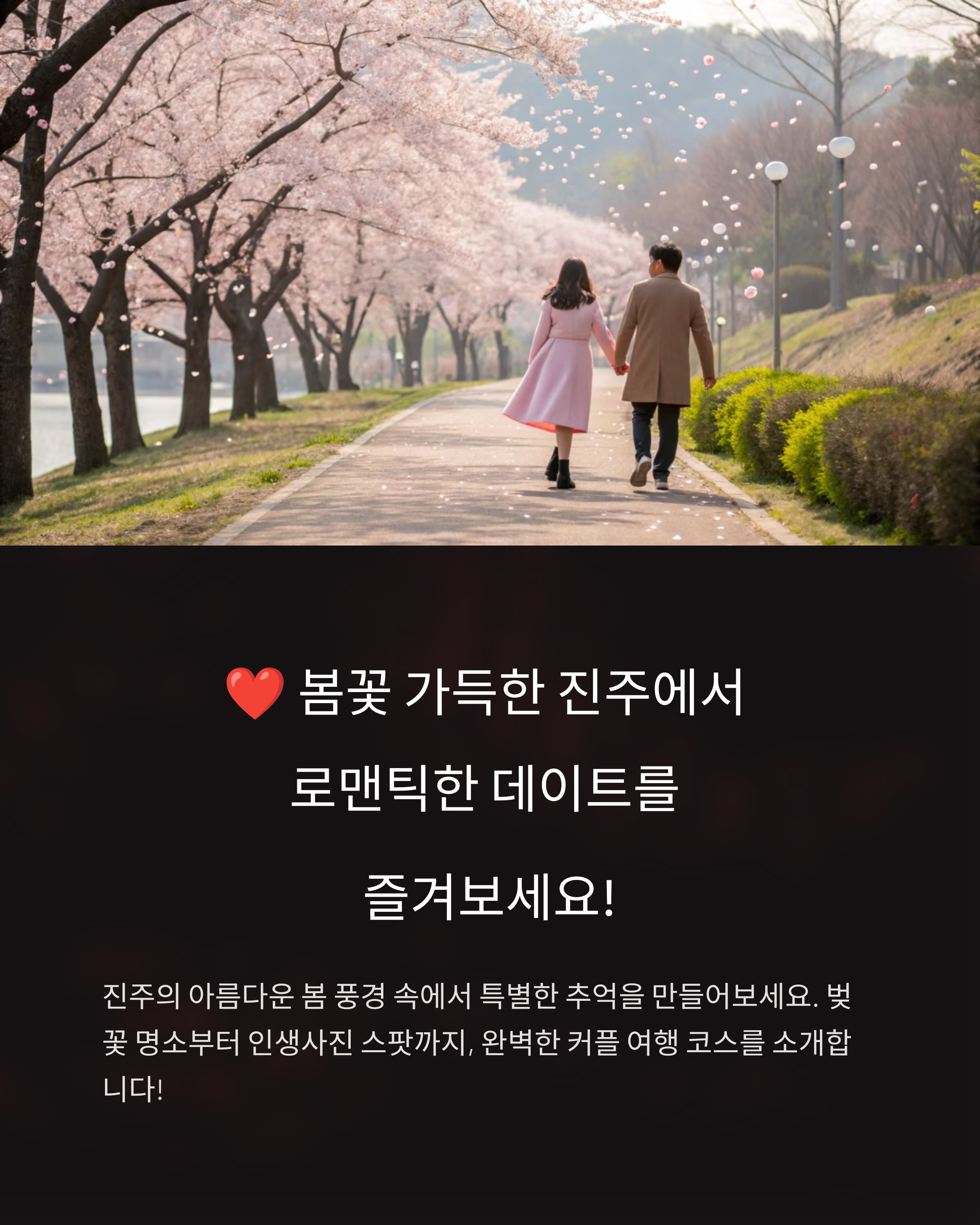안녕하세요, 여행을 사랑하는 블로거입니다 :) 봄이 오면 어김없이 떠오르는 봄꽃 나들이! 이번 주말에는 경남 진주로 짧은 여행을 다녀왔는데요, 정말 만족도 100%였어요. 특히 진양호공원은 벚꽃 시즌이면 인생샷 건지기 좋은 명소로 유명하죠. 오늘은 진주에서 걷기 좋은 길, 감성 카페, 봄 데이트 장소 등 가볍게 다녀올 만한 ‘핵심 스폿’만 콕 집어 소개해드릴게요. 연인끼리도, 가족과도 완벽한 코스랍니다!