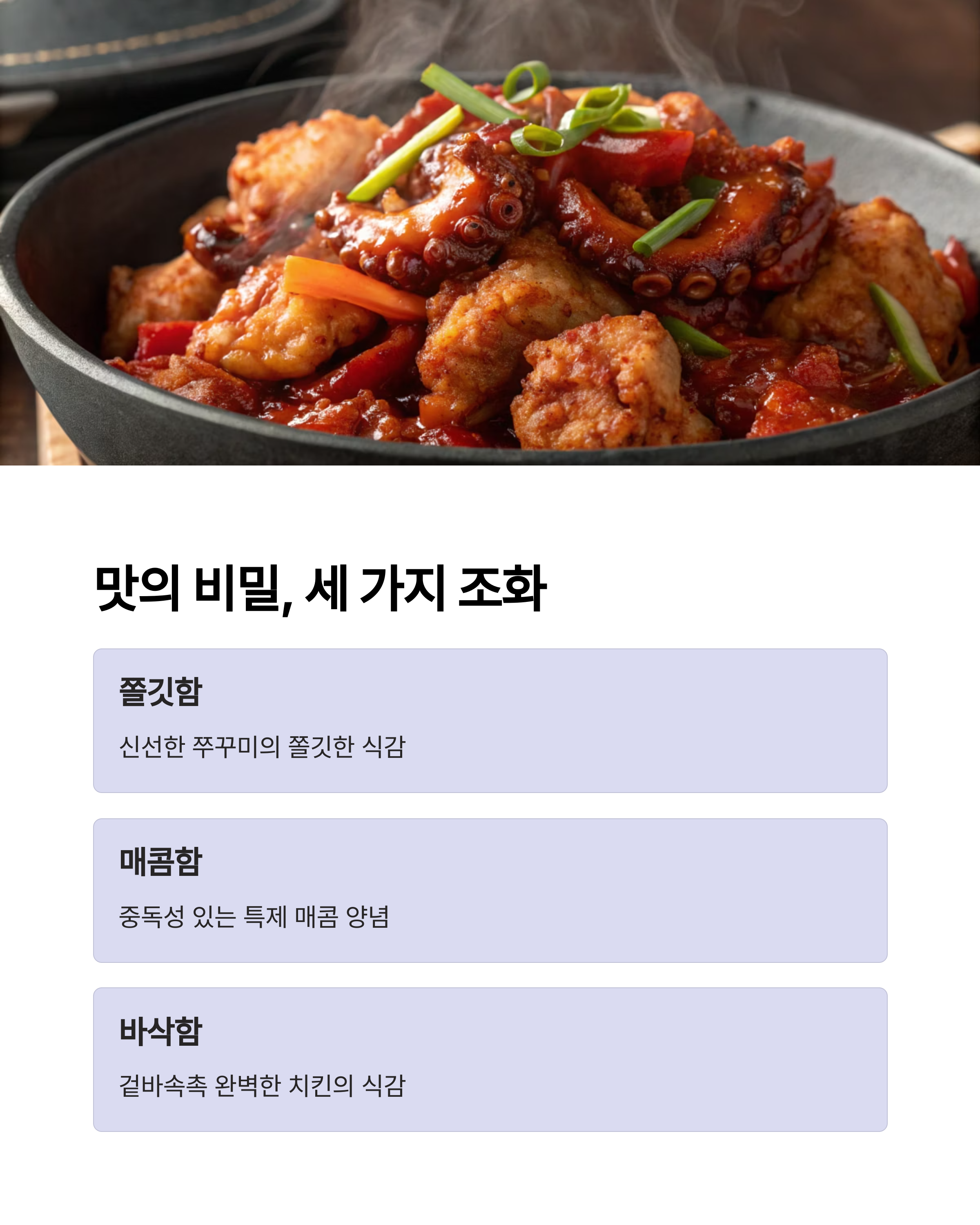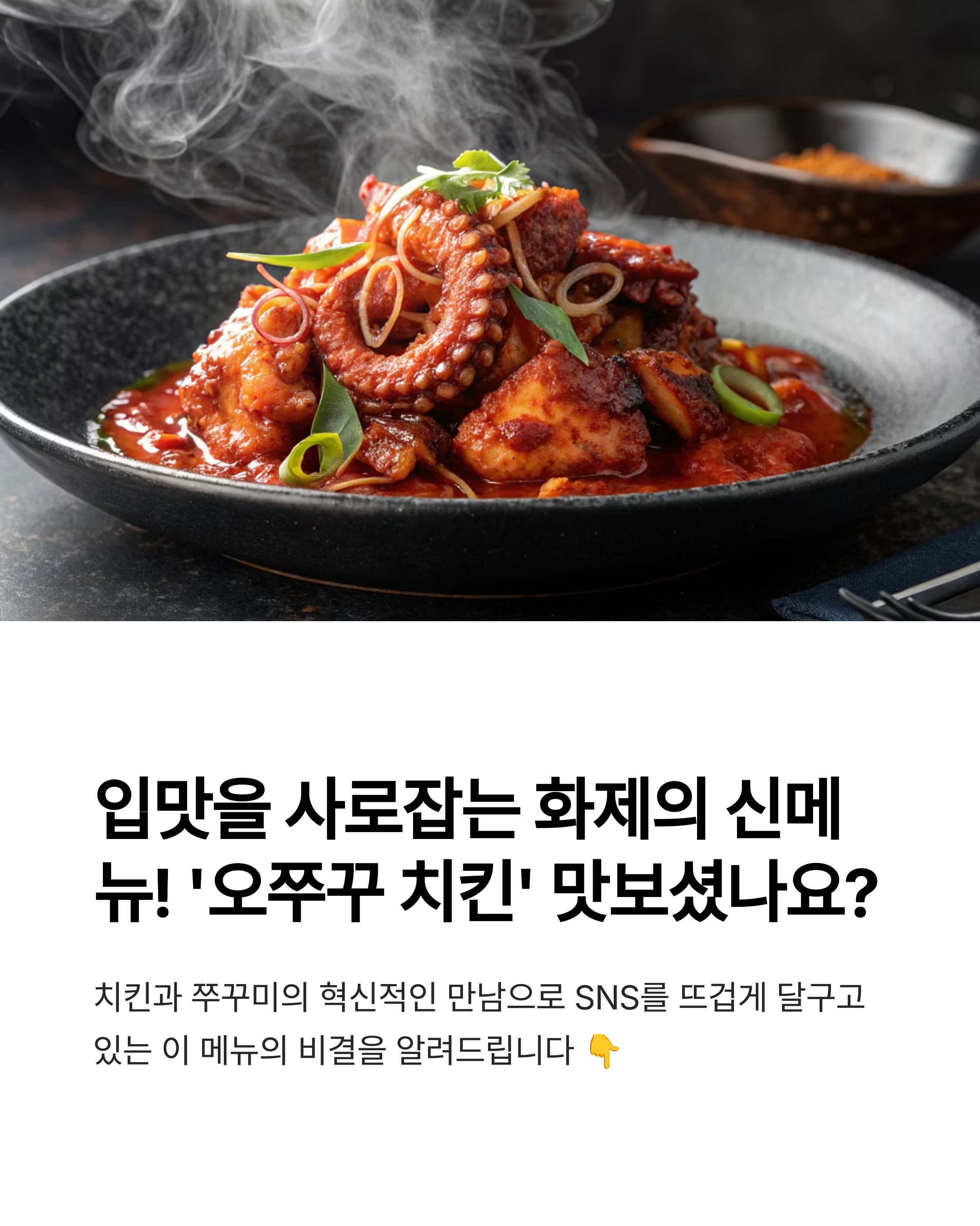 2025년 4월, 치킨계에 또 한 번의 충격이! 쭈꾸미와 치킨이 만난 ‘오쭈꾸 치킨’, 벌써 SNS와 배달 앱을 뜨겁게 달구고 있습니다.