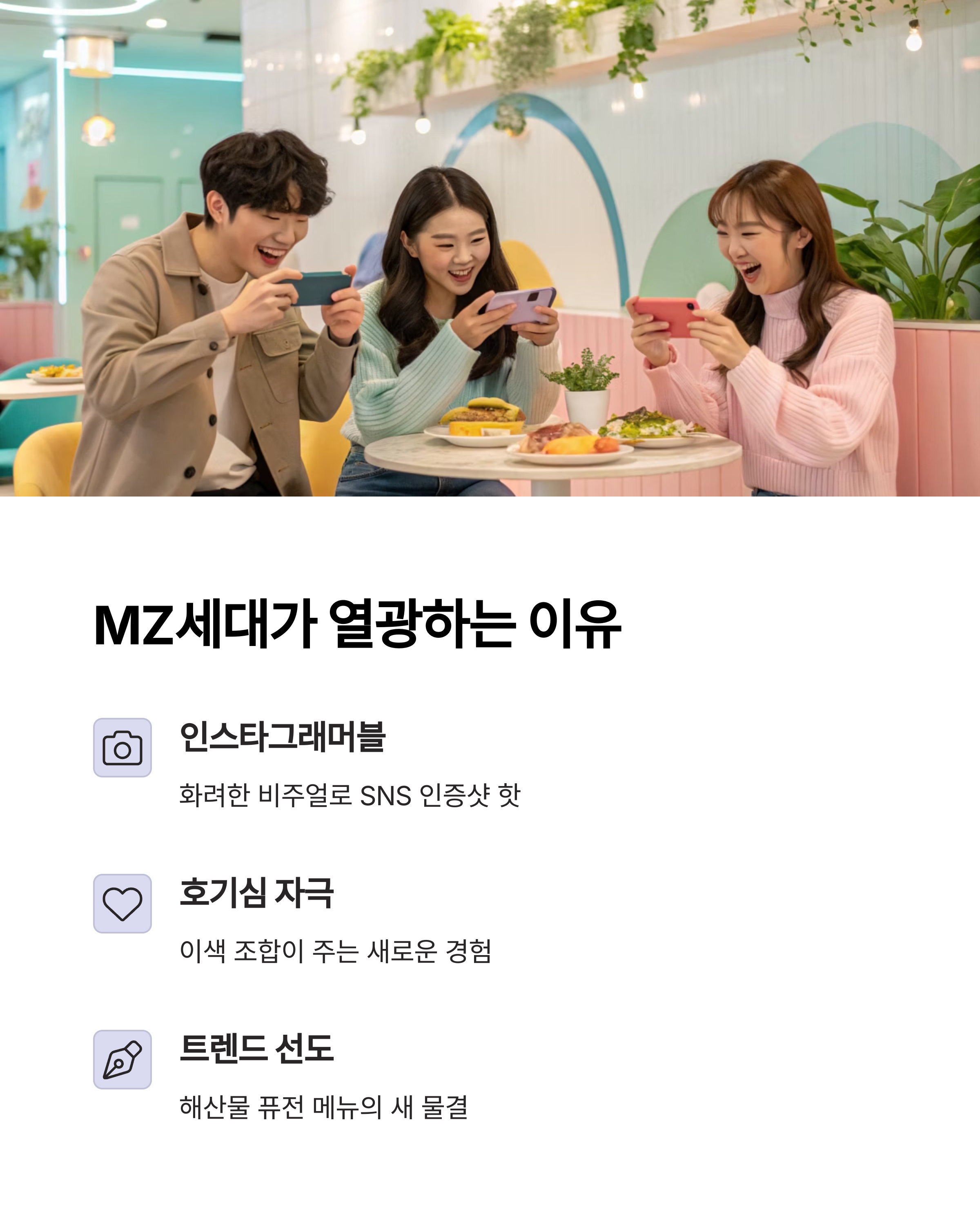 • 해산물+패스트푸드 조합 메뉴의 다양화 (예: 오징어버거)