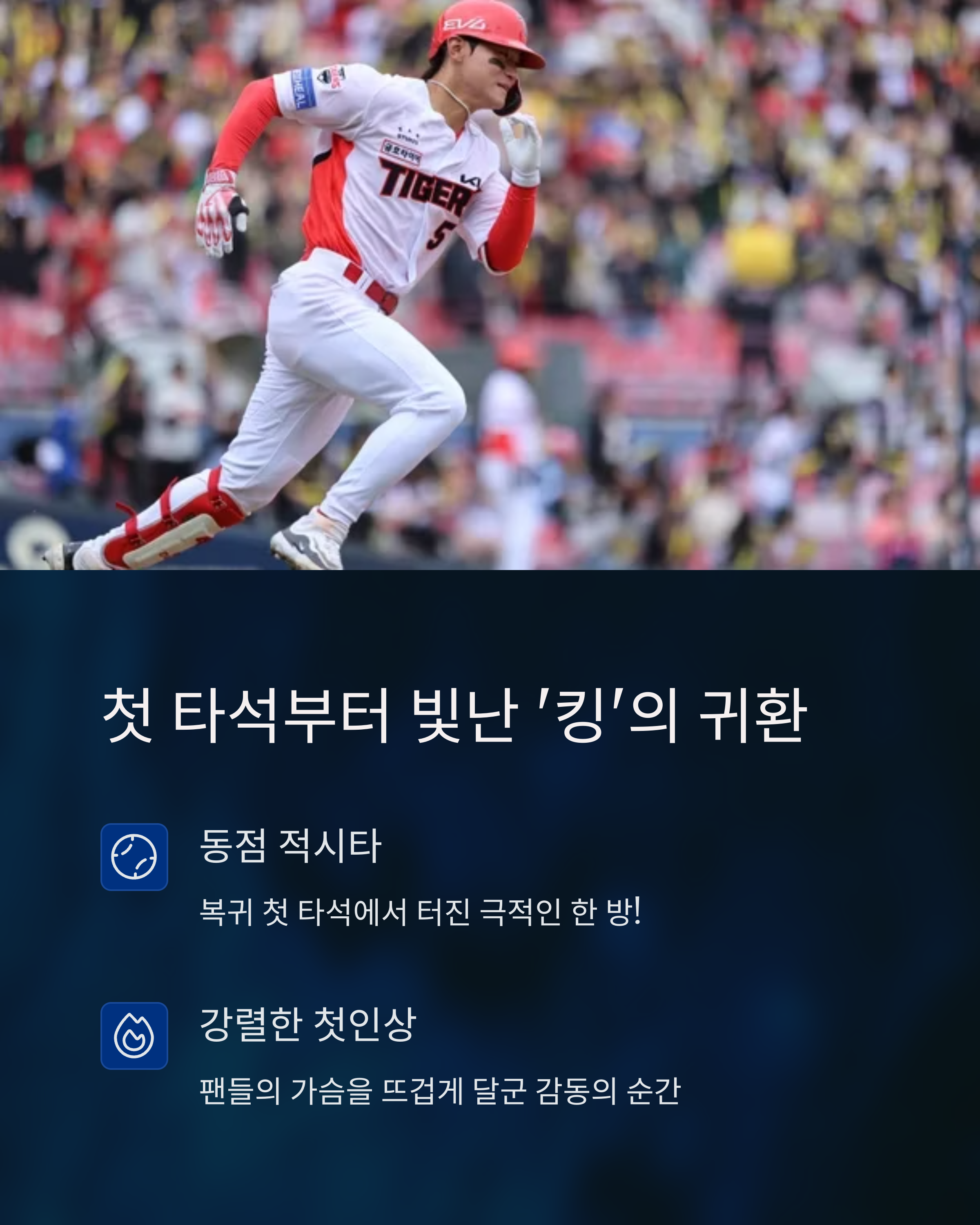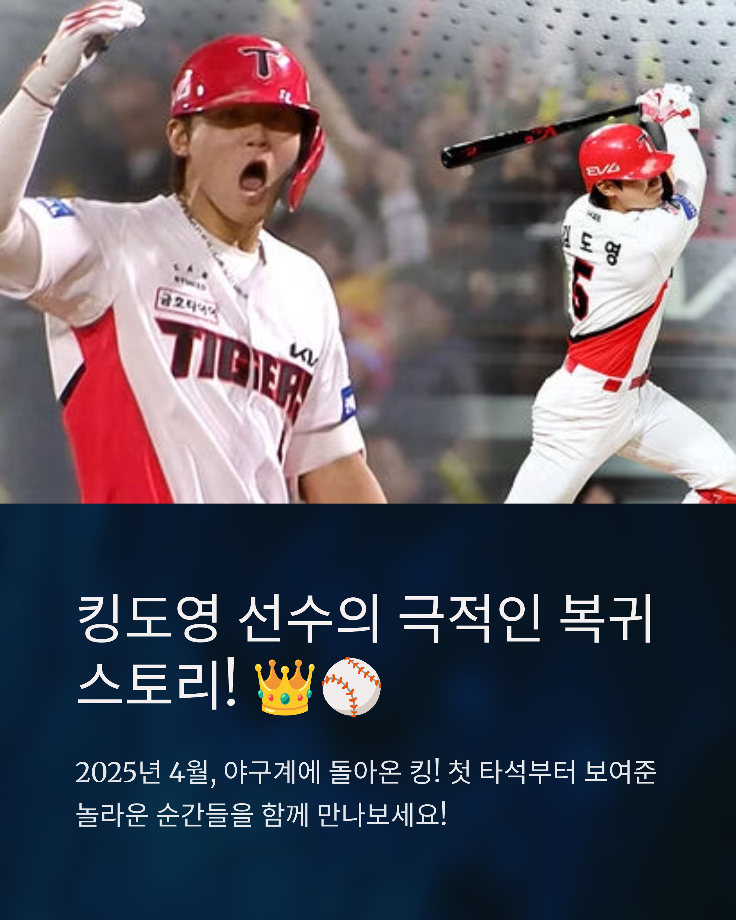 안녕하세요, 스포츠를 사랑하는 여러분! 요즘 정말 쌀쌀했다가 갑자기 더워진 날씨처럼 야구계에도 뜨거운 뉴스가 터졌어요. 바로, 오랫동안 기다렸던 킹도영 선수의 복귀입니다. 2025년 4월 24일, SBS 뉴스에 따르면 킹도영은 복귀 첫 타석에서 믿을 수 없는 동점 적시타를 터뜨리며 팬들의 기대를 완벽하게 충족시켰다고 해요. 저도 이 소식을 듣고 어찌나 반갑던지, 혼자 집에서 소리 지를 뻔했답니다. 오늘은 이 뜨거운 소식을 중심으로 킹도영 선수의 복귀와 앞으로의 기대를 함께 이야기해볼게요!