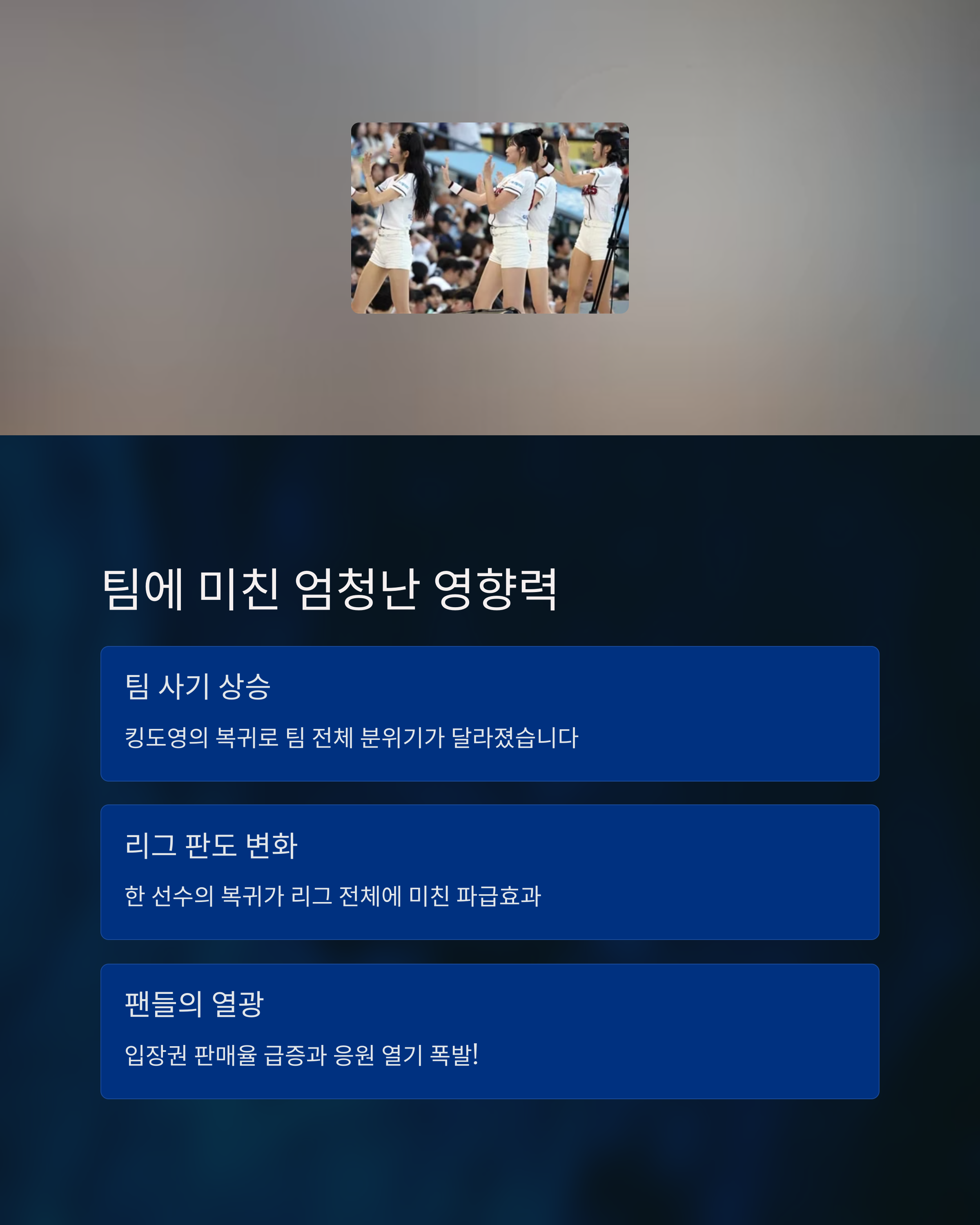 - 복귀 신드롬이 다른 팀 팬덤에도 긍정적 자극