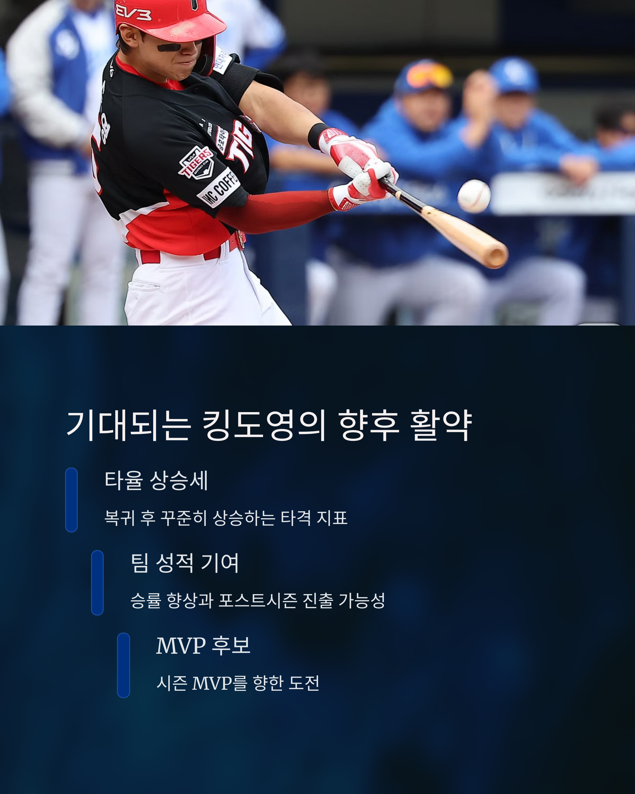 킹도영 선수의 복귀는 단순한 이벤트가 아니라 시즌 판도를 뒤흔들 수 있는 변수입니다. 향후 몇 가지 트렌드를 예측해볼게요:
