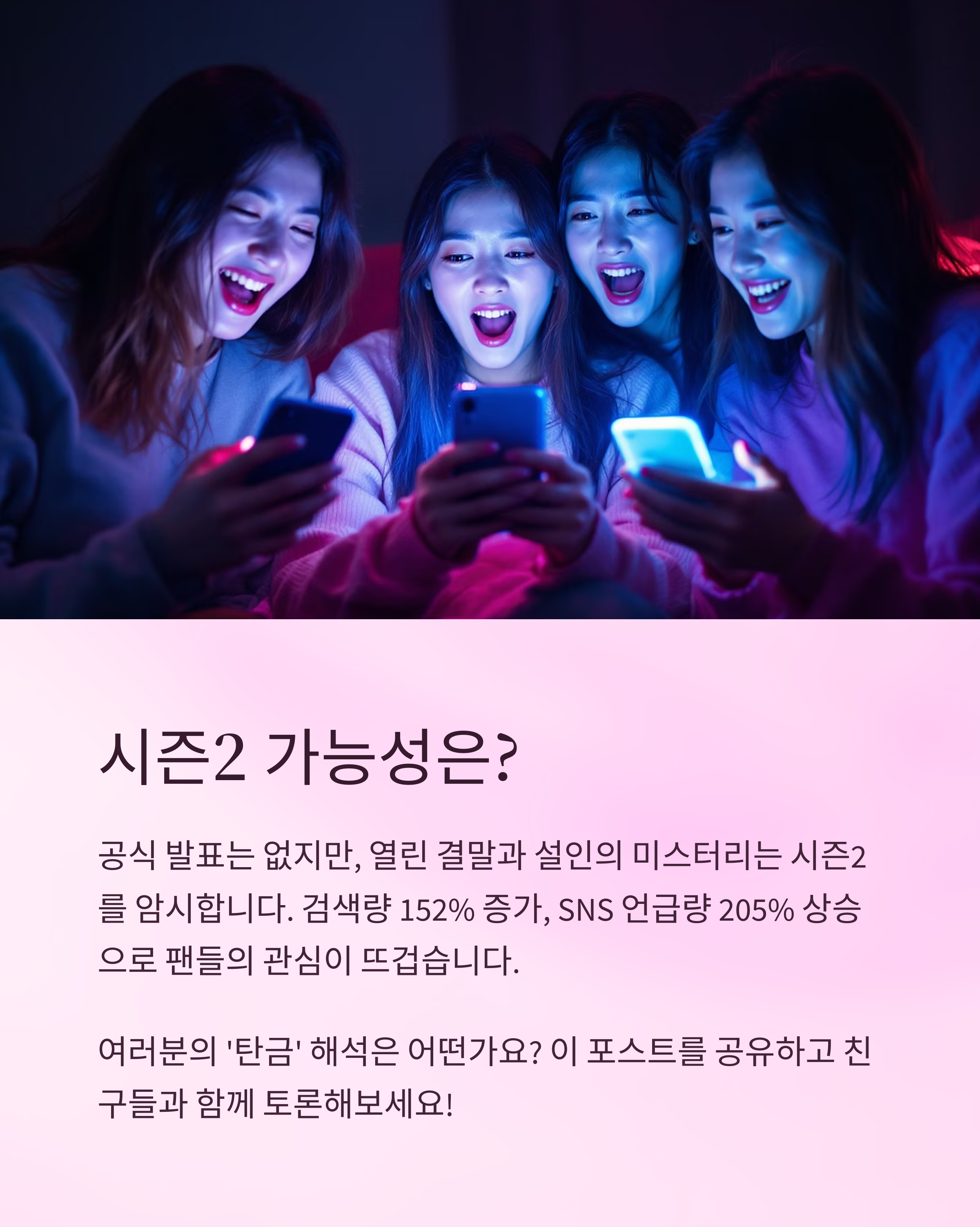 현재까지 공식적인 시즌2 발표는 없지만, 열린 결말과 복선이 넘치는 구조로 인해 시즌2에 대한 기대는 계속되고 있습니다. SNS와 커뮤니티에서는 이미 수많은 떡밥 분석이 오가고 있죠.