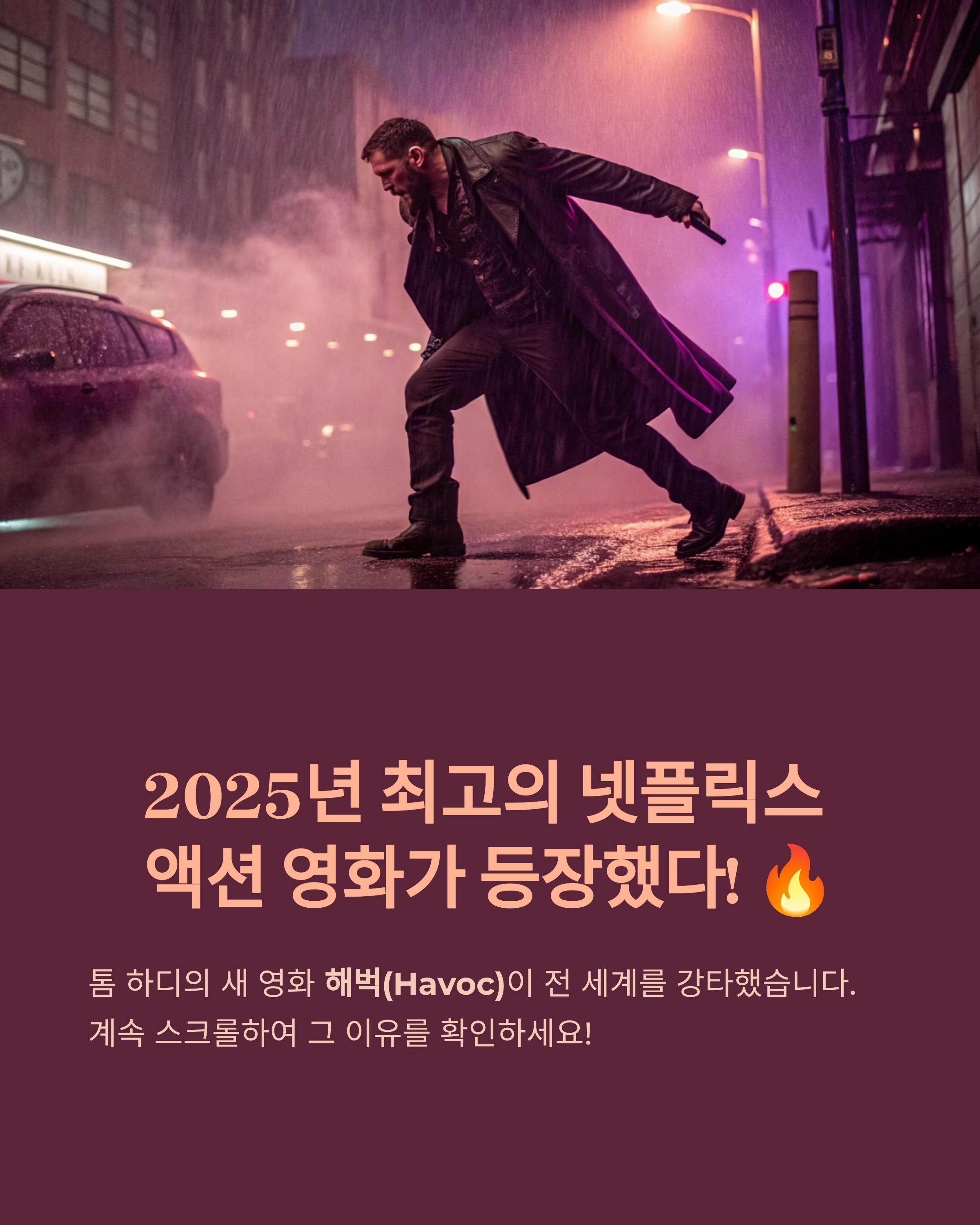 "2025년 4월 공개된 톰 하디 주연의 넷플릭스 오리지널 액션 영화 <해벅(Havoc)>, 벌써부터 SNS와 커뮤니티를 뜨겁게 달구고 있습니다!"