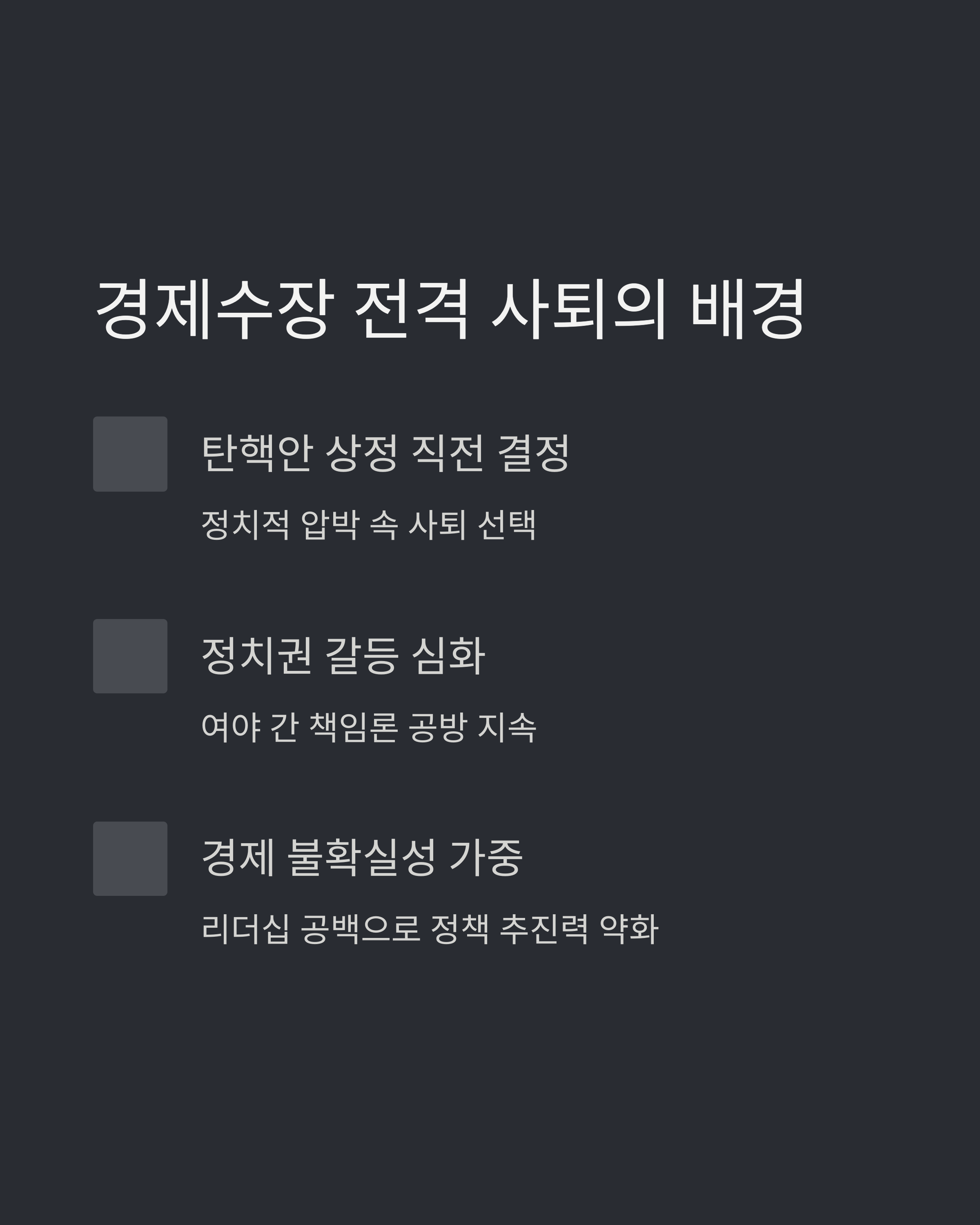 경제수장의 공백은 단순한 자리 비움이 아닙니다. 국정의 구심점이 사라졌다는 뜻이죠. 향후 몇 가지 가능성이 예상됩니다: