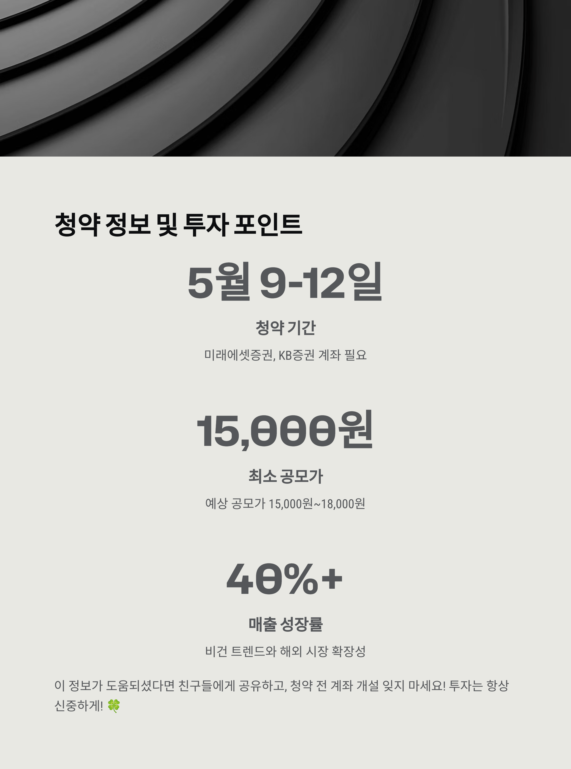 4. 공모가 매력도: 아직 확정은 아니지만, 예상 공모가가 현재 뷰티 업계의 다른 기업들과 비교했을 때 합리적인 수준이라는 의견도 많아요.