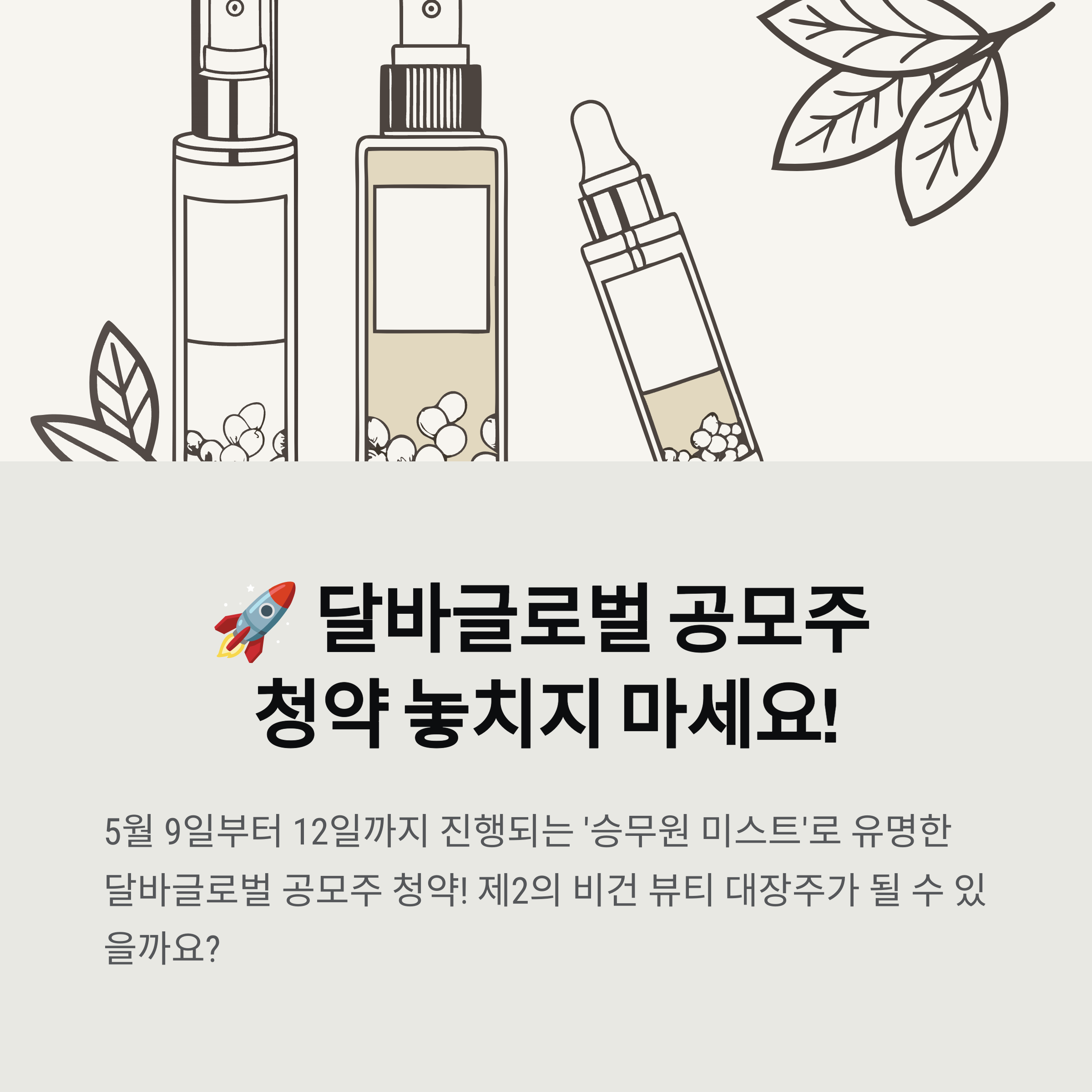 🚀 달바글로벌 공모주 청약, 놓치지 마세요! 5월 9일부터 12일까지 진행되는 달바글로벌 공모주 청약의 핵심 정보를 쉽고 빠르게 파악하고, 성공적인 투자를 위한 전략을 세워보세요. 과연 달바글로벌은 '제2의 비건 뷰티 대장주'가 될 수 있을까요?