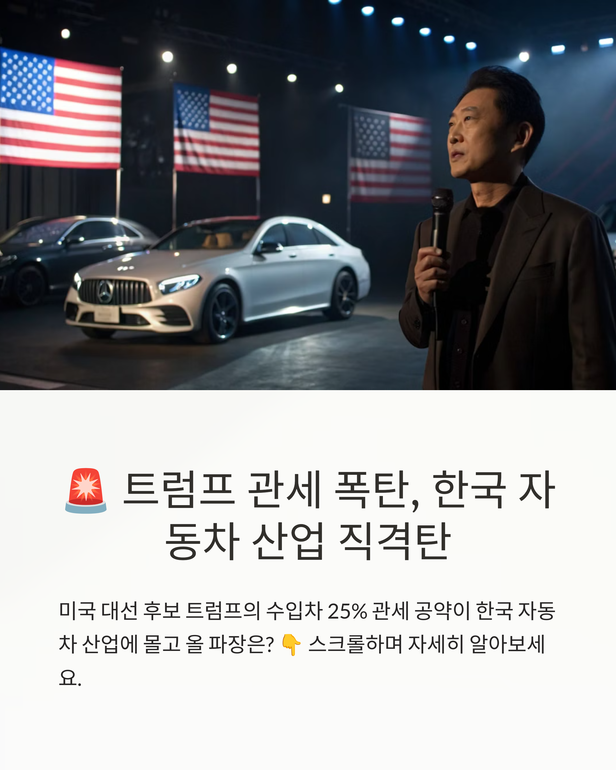 “수입차는 미국 일자리를 죽이고 있다”는 기존 논리를 반복하며, 자동차 산업을 안보 이슈로 간주하는 입장을 재강조했죠.
