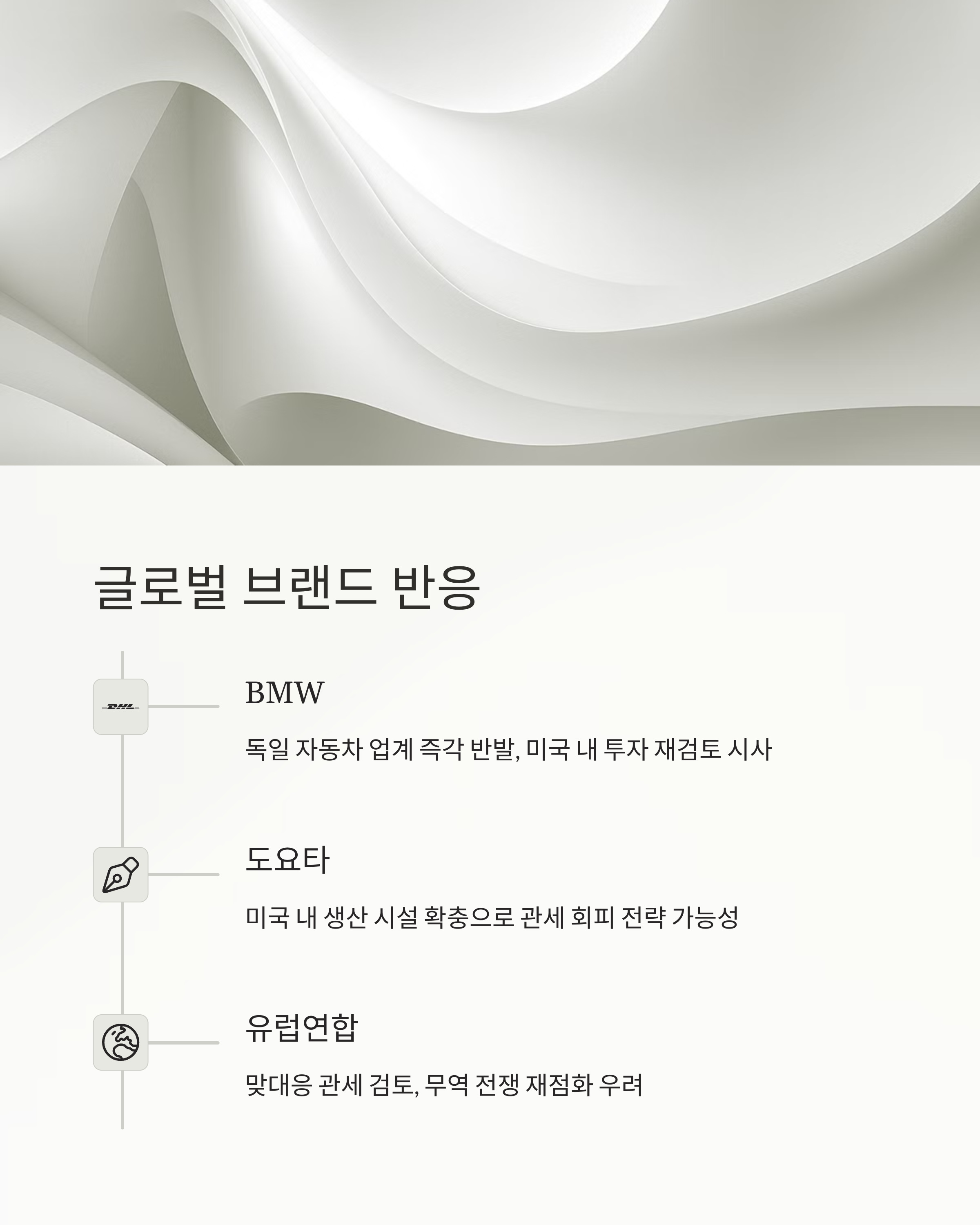 - 미국 내 생산 확대 압력 → 글로벌 브랜드 전략 수정 예상