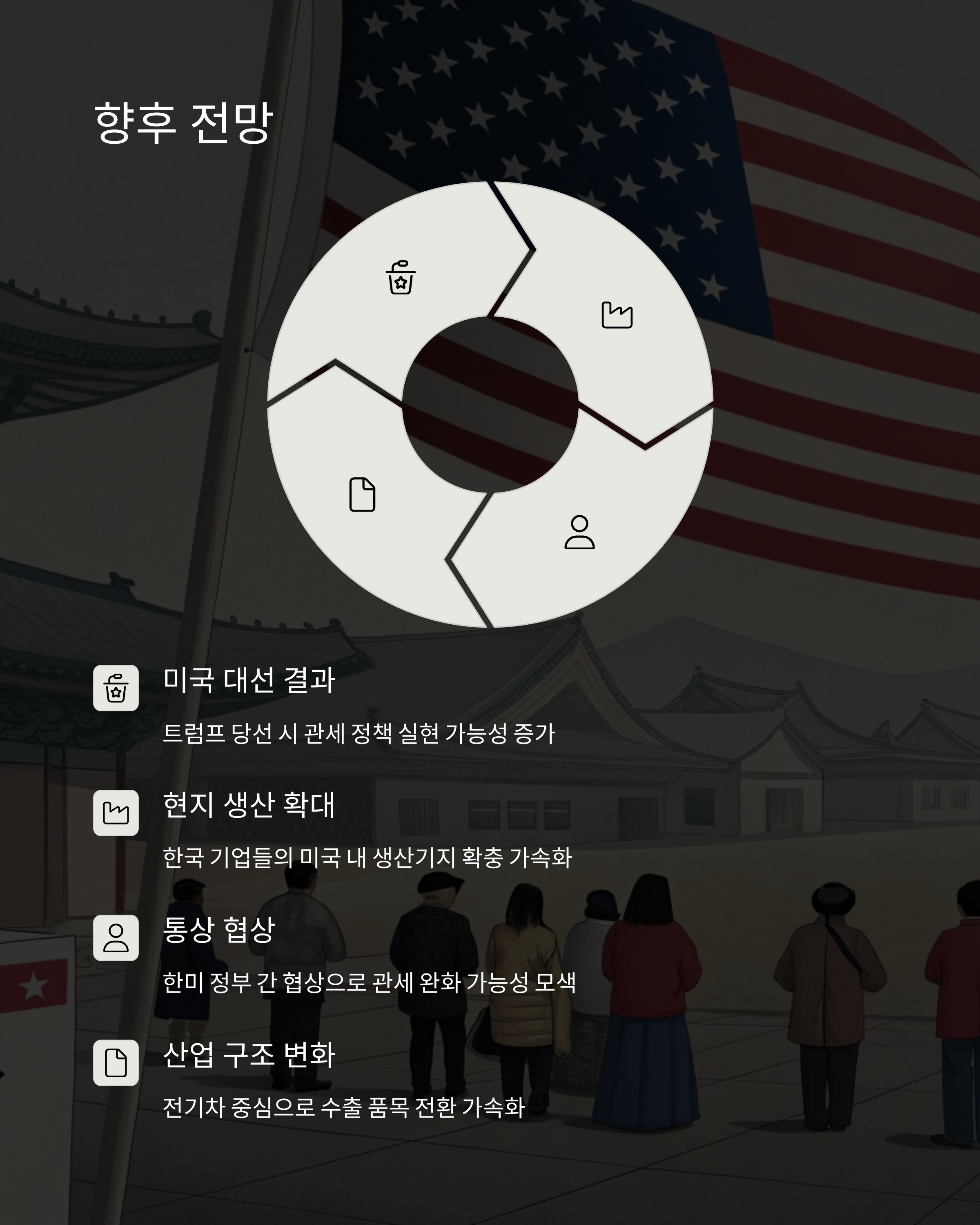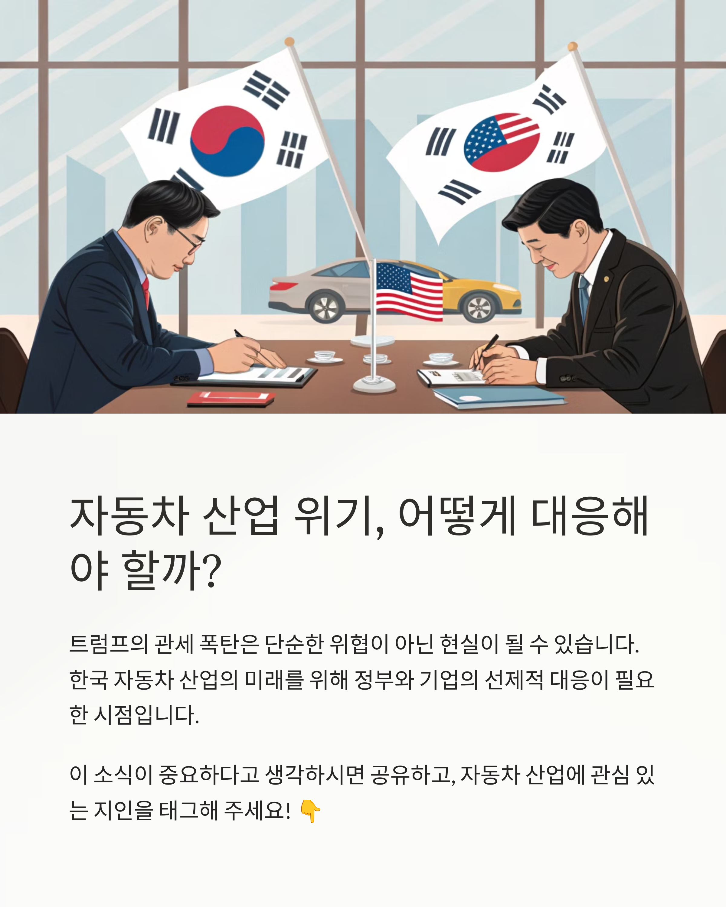 - 실제 관세 부과 → 글로벌 자동차 산업 단기 침체 가능성
