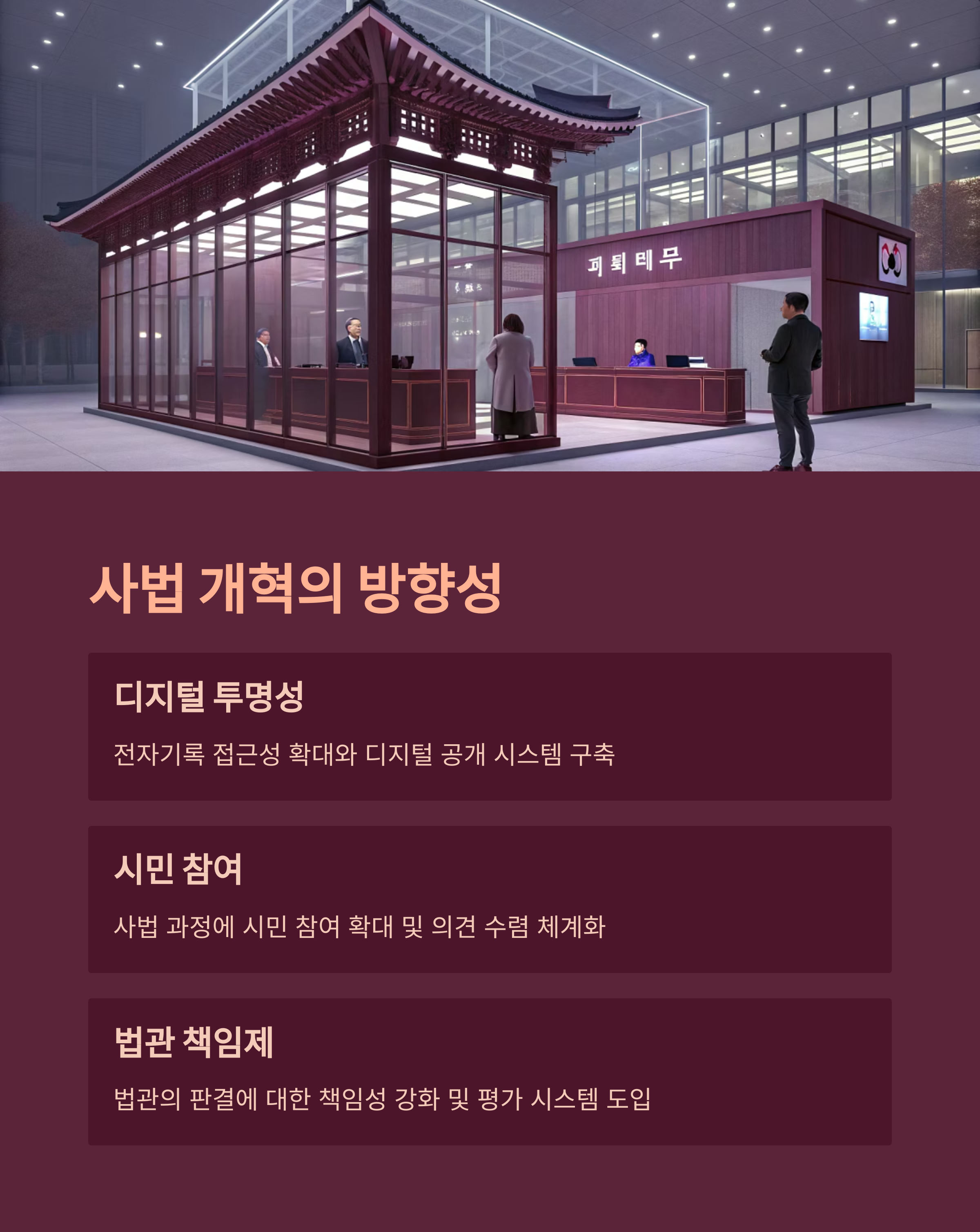 사법 시스템의 투명성과 책임성 강화를 요구하는 목소리로 이어지고 있으며, 장기적으로는 사법개혁 논의의 촉매가 될 수 있습니다.