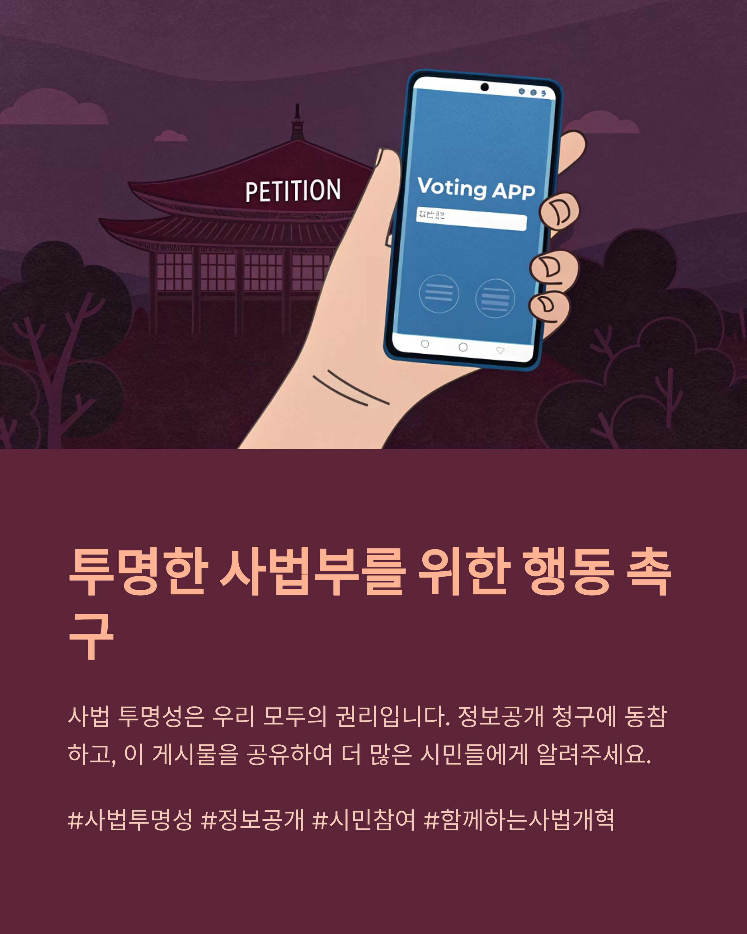 "사법부마저 정치의 그림자에 휘말리는 걸까?" 지금, 수많은 시민들이 사법정보공개포털 앞에서 묻고 있습니다.