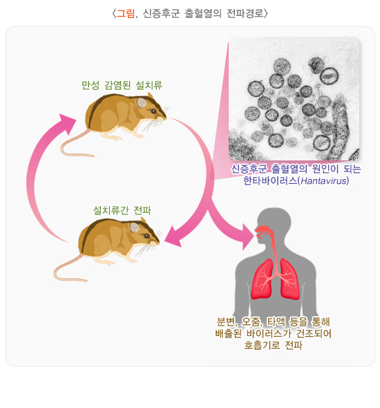 | 공기 전파 | 들쥐 배설물이 마르면서 발생한 먼지 흡입 |