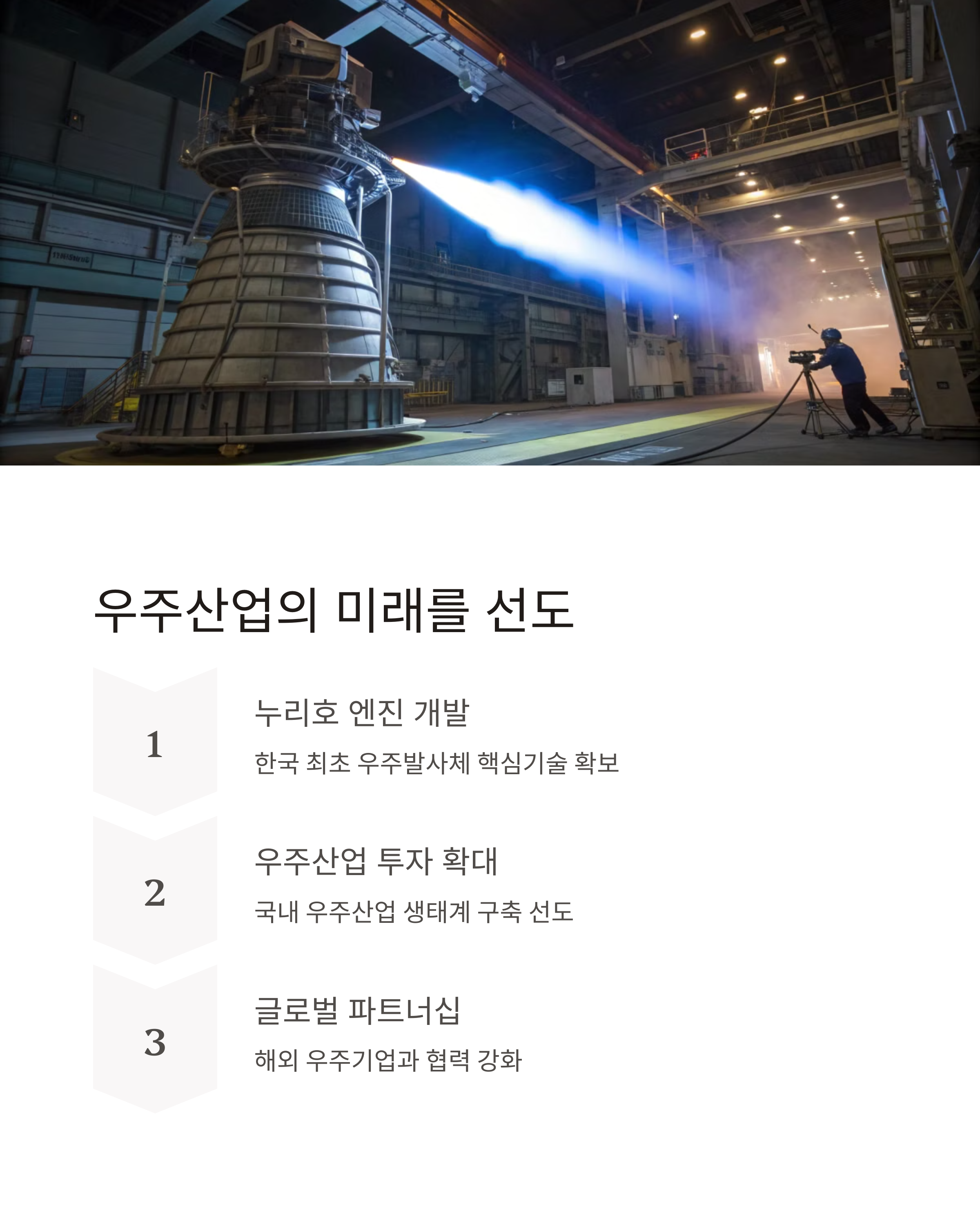 | 누리호 액체엔진 개발 | 75톤급, 7톤급 엔진 | 차세대 발사체 주도 |