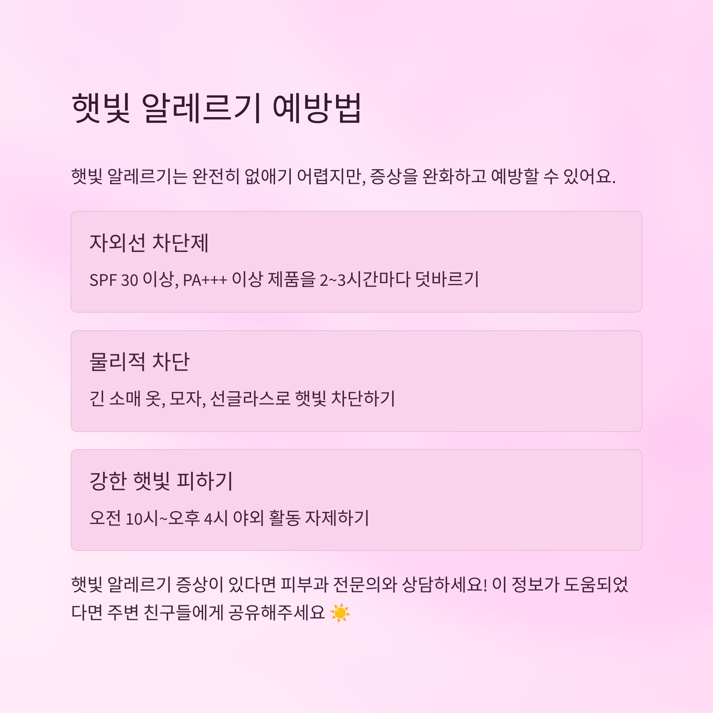 햇빛 알레르기 관리의 핵심 요약 📝