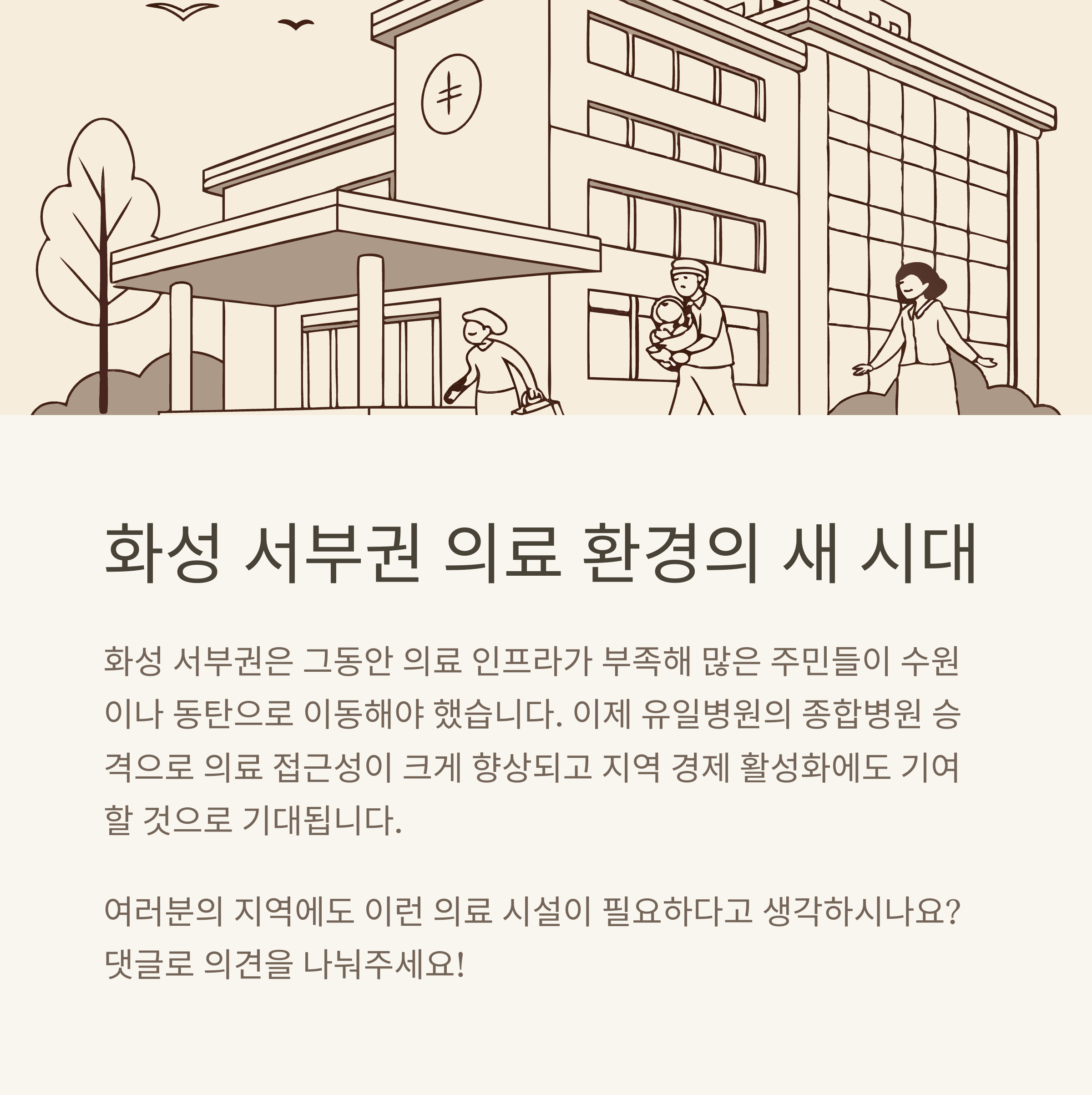 저도 예전에 아픈 적이 있었는데, 큰 병원 가려고 동탄까지 갔던 기억이 있어요. 그때마다 '우리 동네에도 좀 있었으면 좋겠다' 생각했었는데, 이제 유일병원이 그 역할을 톡톡히 해줄 거라고 믿어요. 지역 주민들의 건강권이 한층 더 향상될 수 있다는 기대감이 정말 커요!