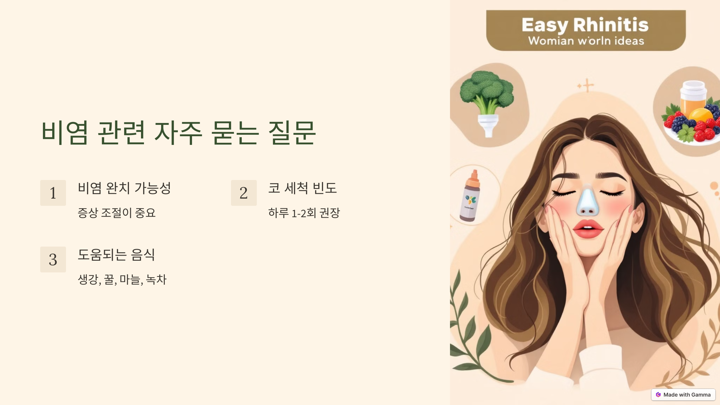 비염은 원인에 따라 완치가 어려울 수도 있지만, 증상을 조절하는 것이 중요해요. 꾸준한 관리로 증상을 최소화할 수 있어요.