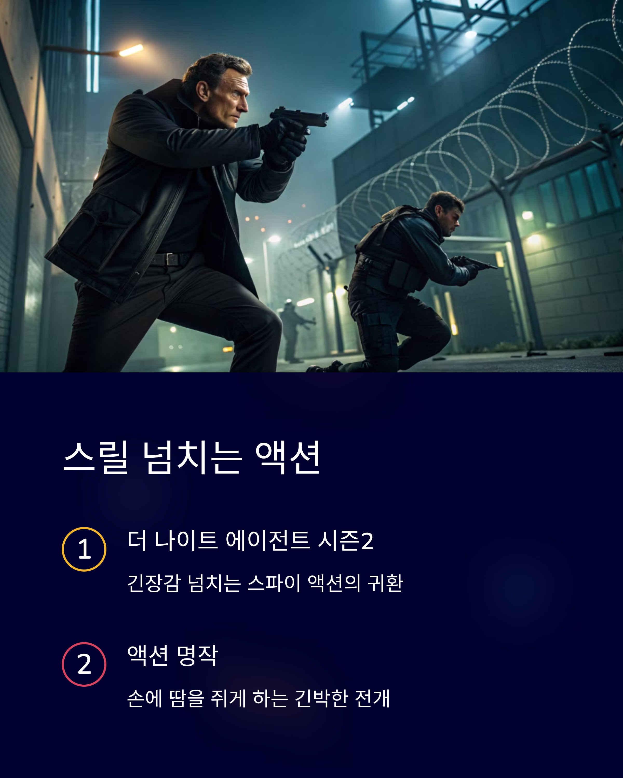이번 4월, 넷플릭스에서는 ‘데블스 애드버킷’이라는 작품이 시청자들의 손에 땀을 쥐게 만들고 있어요. 알 파치노와 키아누 리브스의 대결 구도는 고전 명작의 향기를 풍기면서도, 여전히 현재의 스릴감을 유지합니다. 보면서 저도 중간에 물도 못 마시고 집중했어요. 또, 국내 팬들 사이에 입소문 난 ‘더 나이트 에이전트 시즌2’도 이번 달 공개되면서 긴장감 있는 정치를 소재로 한 스릴러를 좋아하는 분들께 제격이에요.