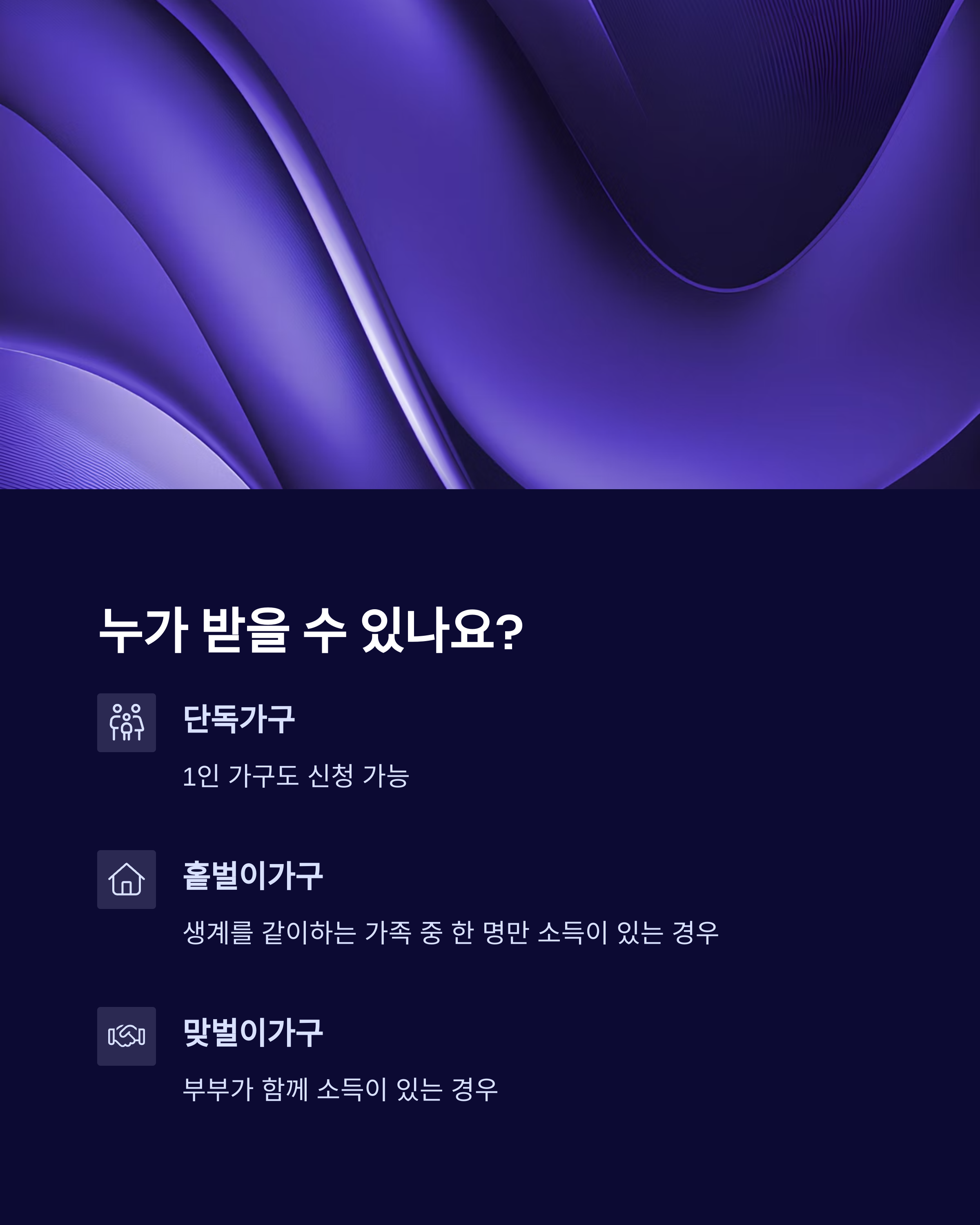 | 가구 유형 | 총소득 기준 | 특이사항 |
