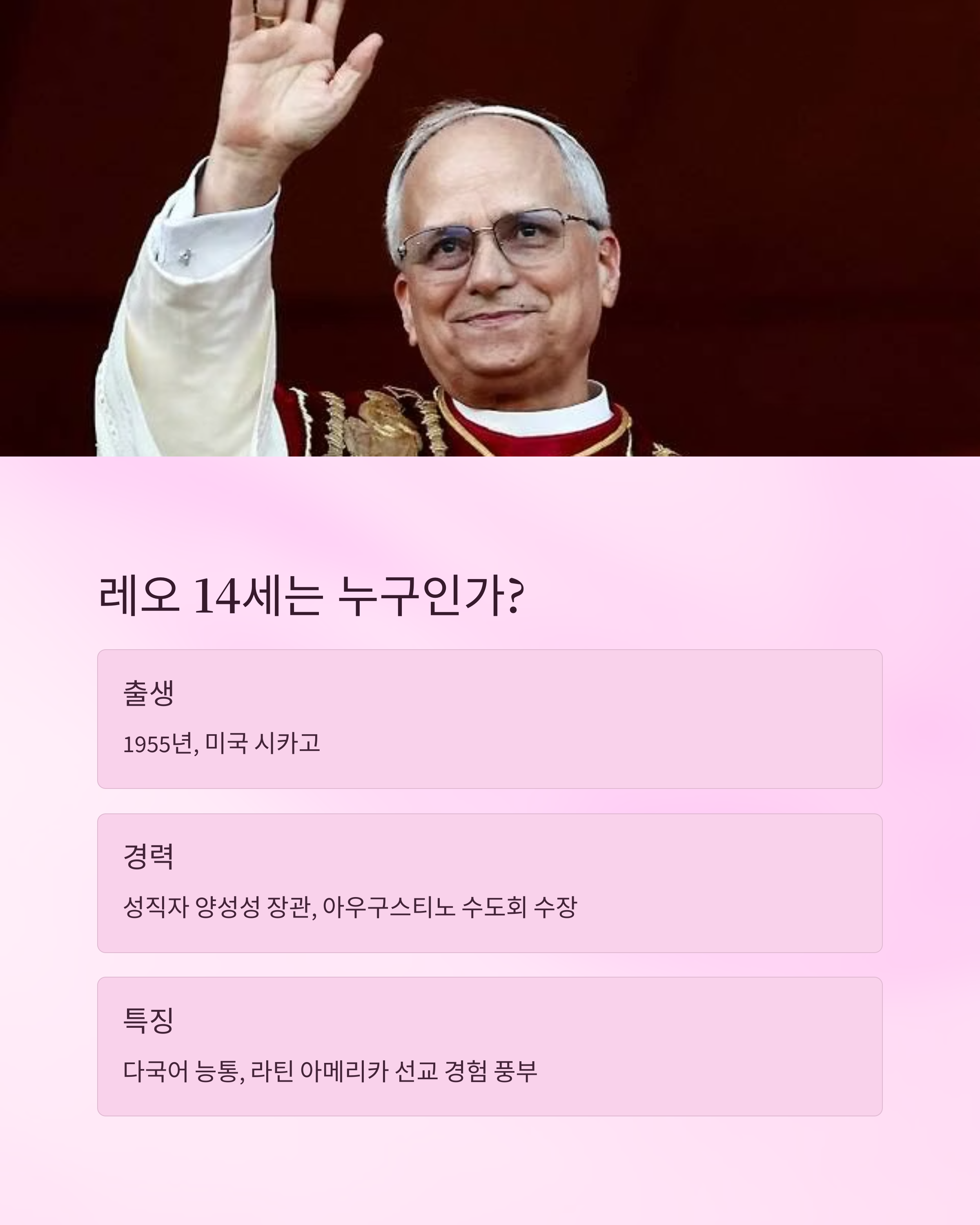 레오 14세는 미국 시카고 출신의 아우구스티노 수도회 출신 추기경이며, 라틴 아메리카 선교 경험과 다양한 언어 구사 능력으로 교황청 내에서 실무와 외교 모두에 능한 인물로 평가받습니다.프란치스코 교황은 왜 퇴위했나요?