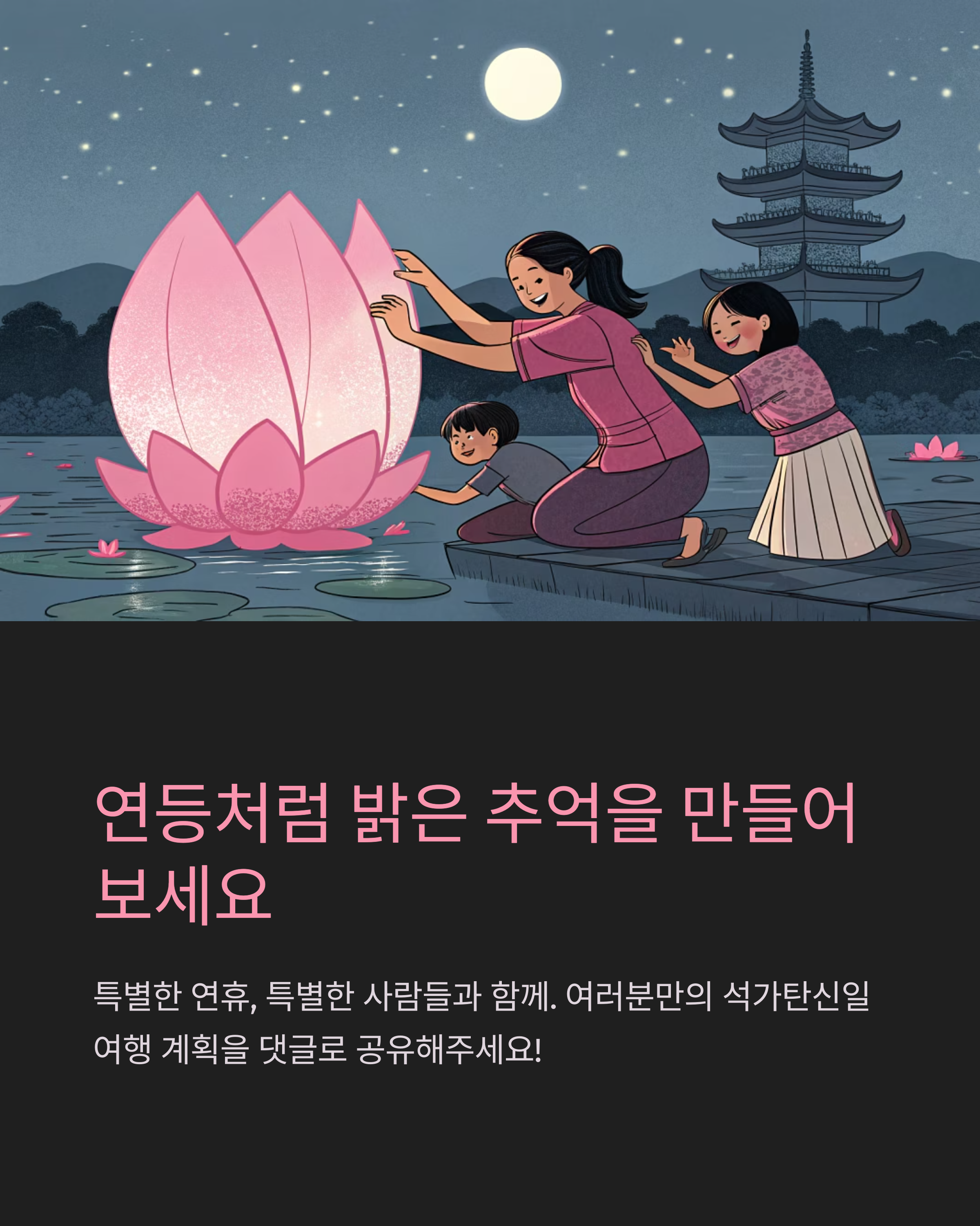 석가탄신일 연등처럼 밝고 따뜻한 연휴 보내시고, 여행을 떠나든, 집에서 휴식을 즐기든 진심으로 만족스러운 하루가 되시길 응원합니다.