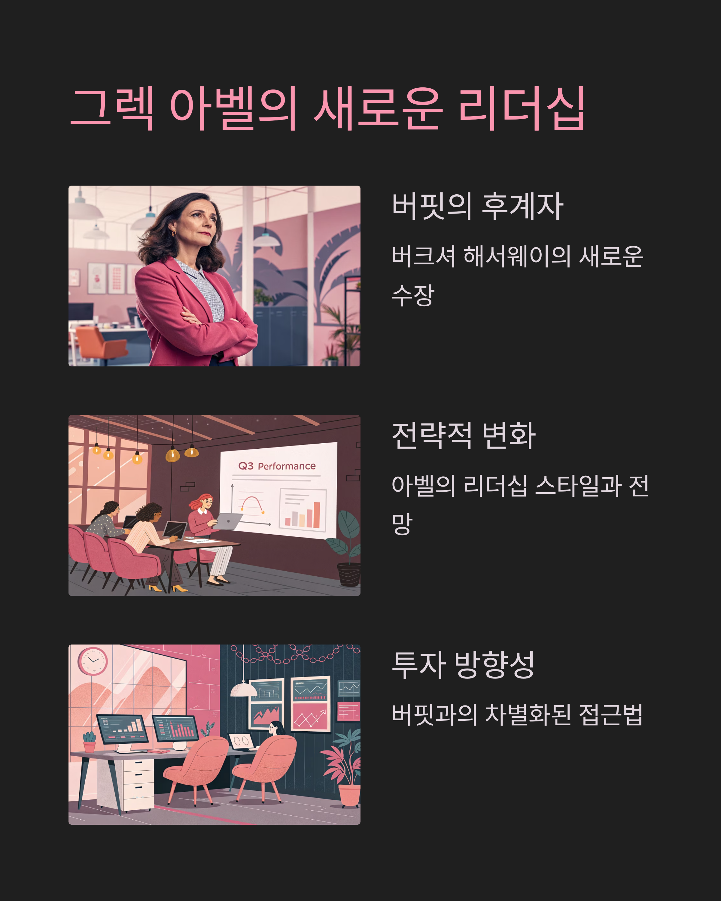 • 버크셔의 가치투자 철학을 계승하되 기술 및 ESG 전략에 개방적