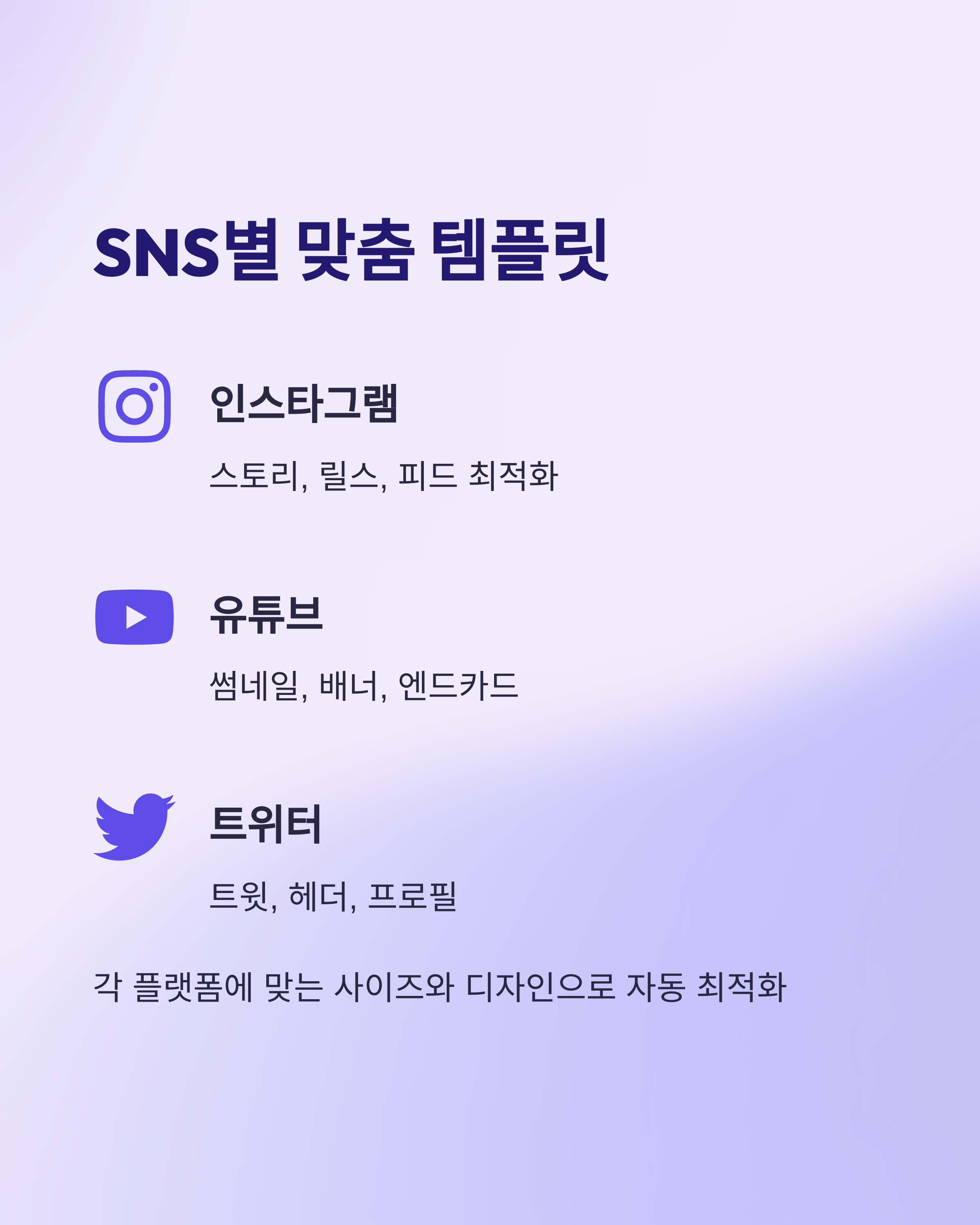 | 유튜브 | 썸네일, 배너 | 영상 제목 강조, 클릭 유도 |
