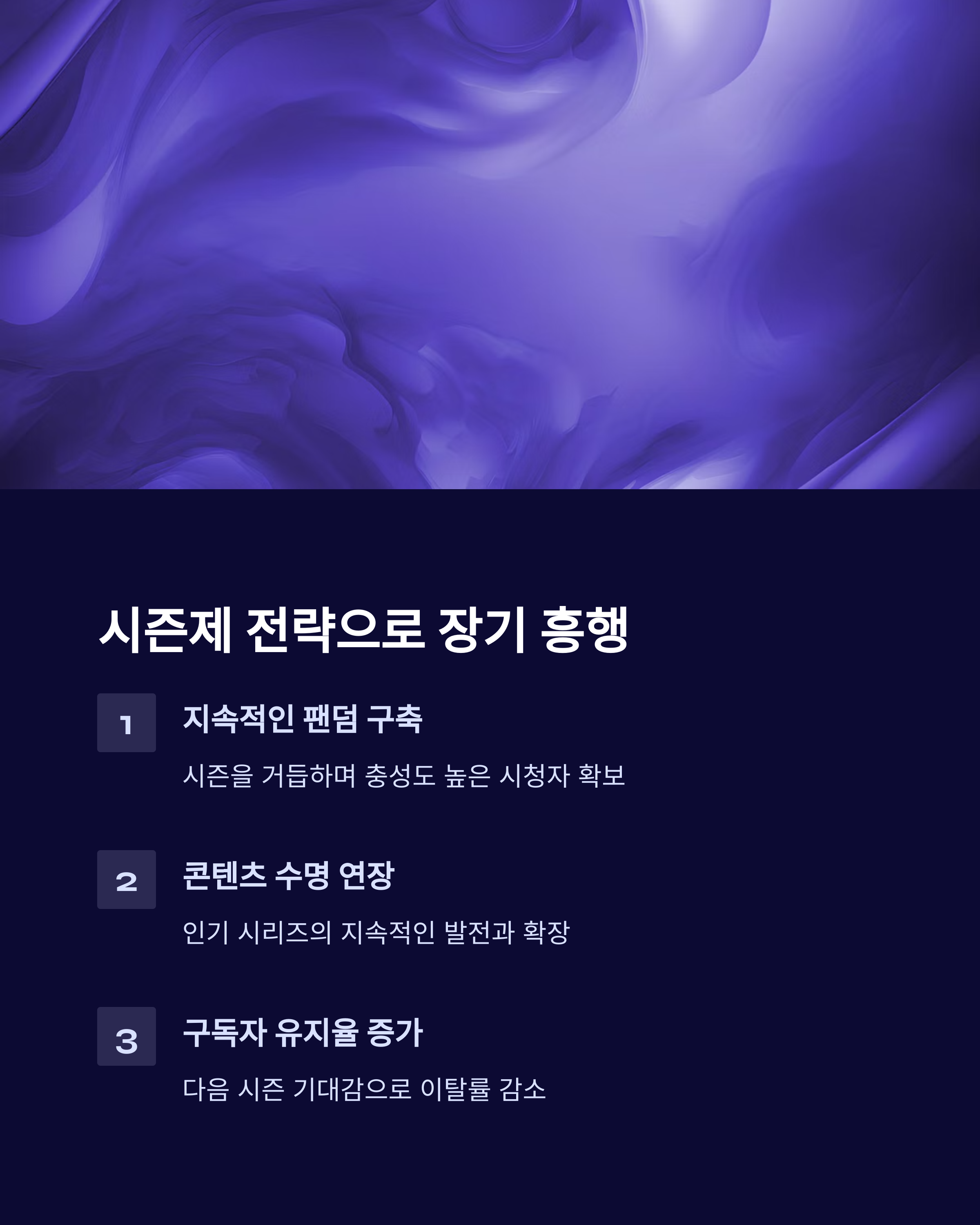 - ① 시즌제 콘텐츠의 확산: 성공작 시즌 연장 전략 지속