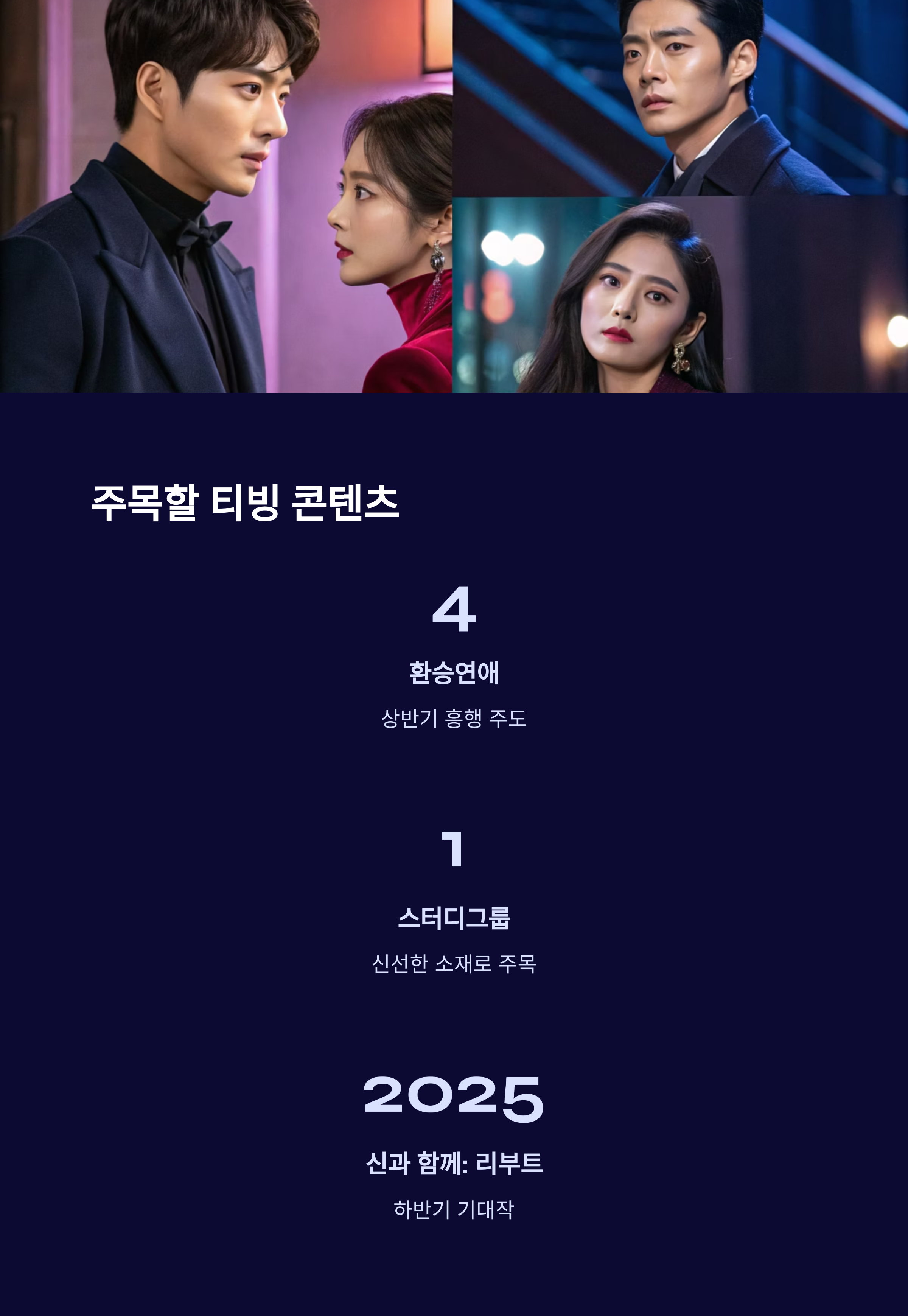 티빙의 2025년 주요 콘텐츠는 장르와 타겟층 모두를 고려한 구성입니다. 아래 표는 2025년 상반기 오리지널 라인업 중 주요 작품들을 요약한 것입니다.