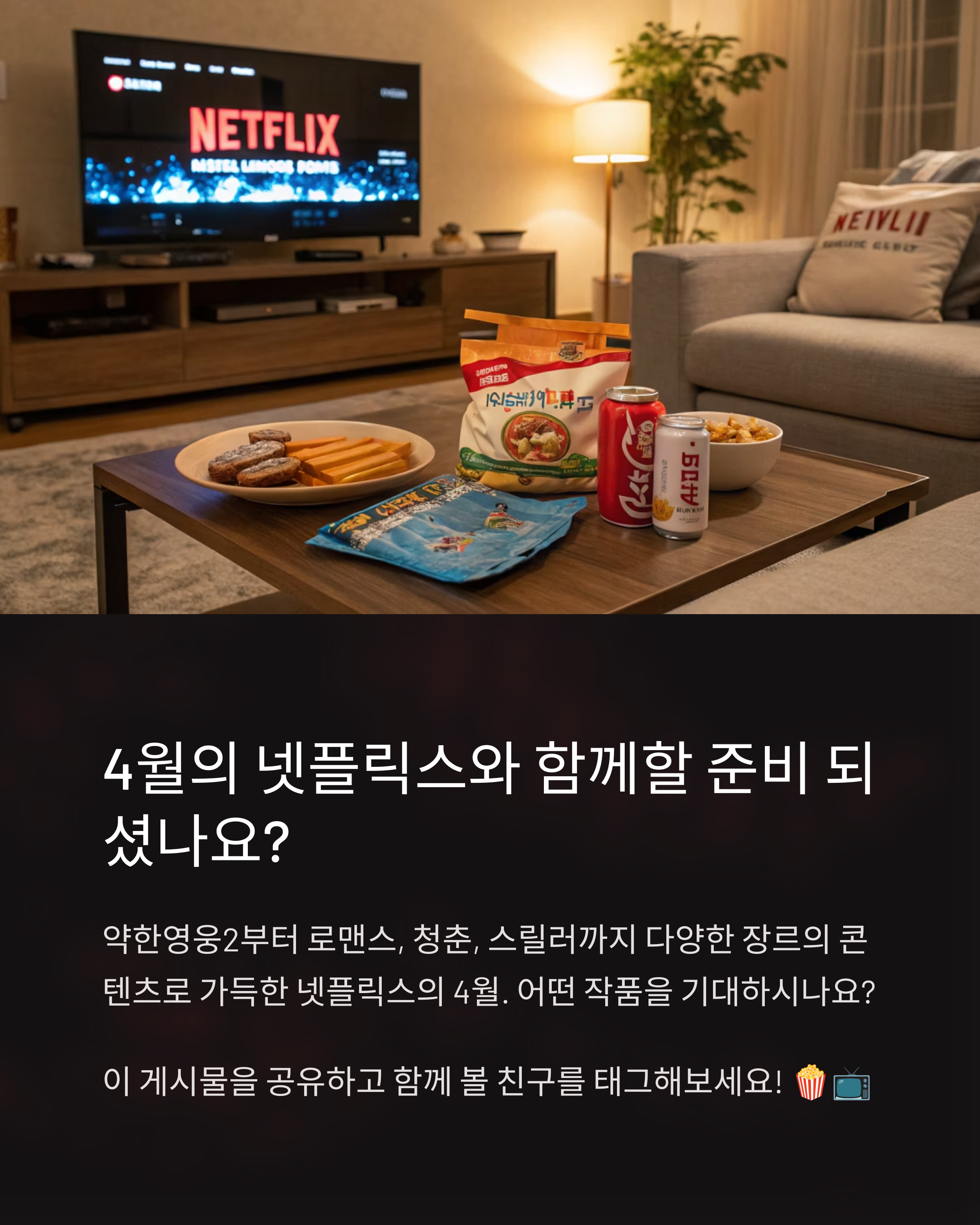 올해 4월은 K-콘텐츠와 글로벌 장르물이 적절히 섞인 라인업이 강세예요. 기존 팬층뿐 아니라 신규 유입을 노린 전략적 구성이 돋보입니다.