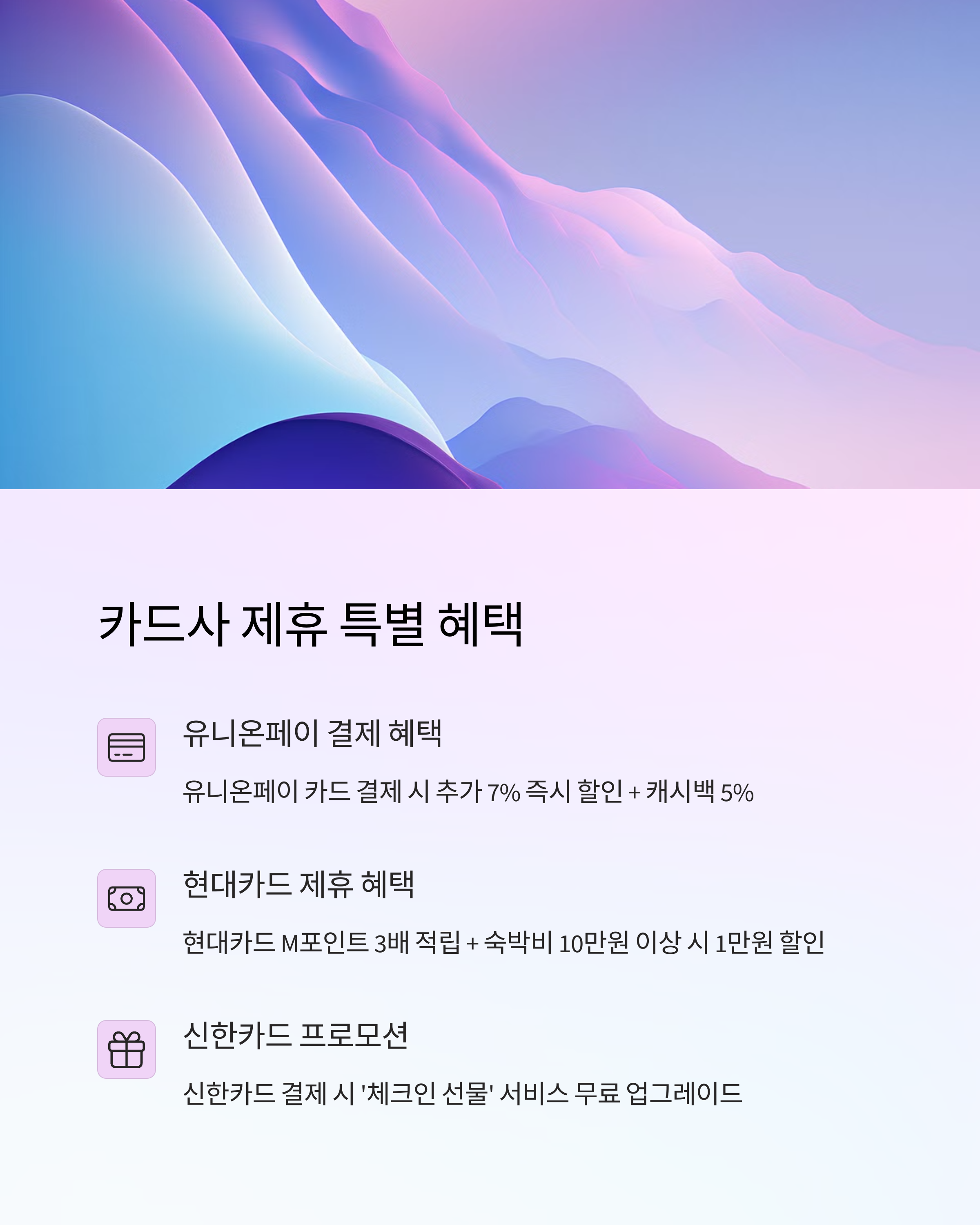 - Q. 카드사 할인은 자동 적용되나요? → 전용 페이지에서 예약 시 자동 적용됩니다.