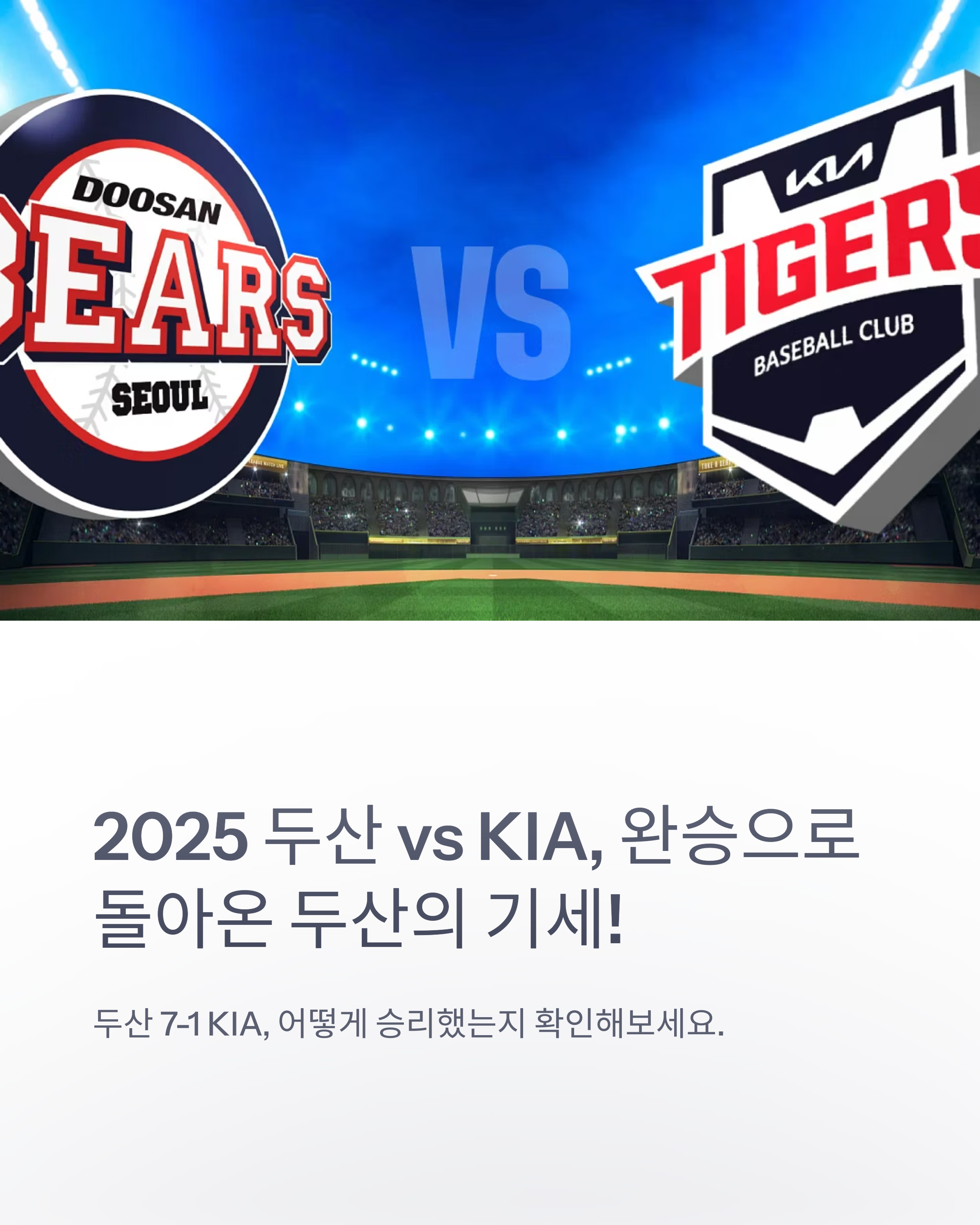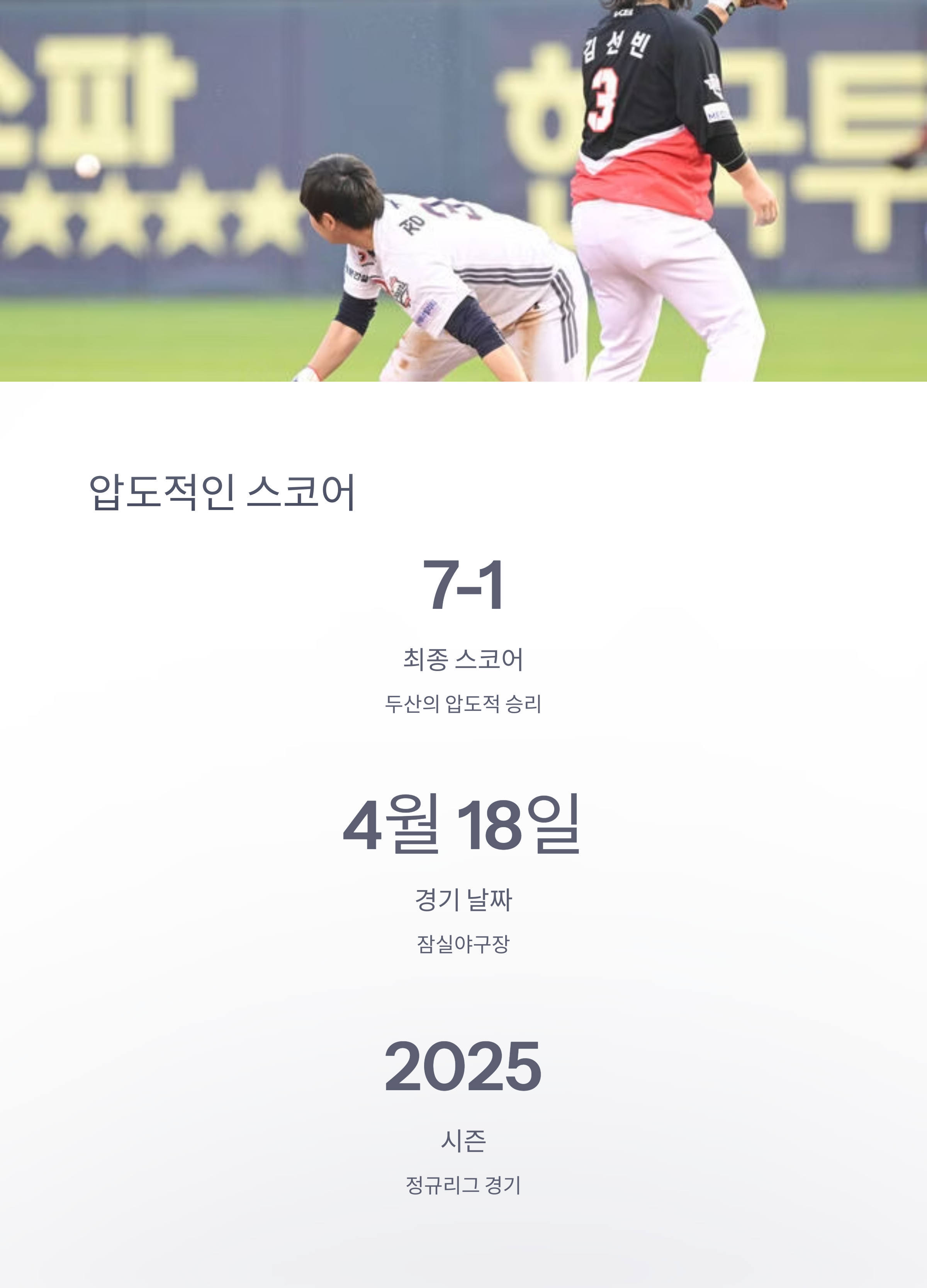 2025년 4월 18일 KBO리그: 두산, KIA에 7-1 승리로 2연승 달성