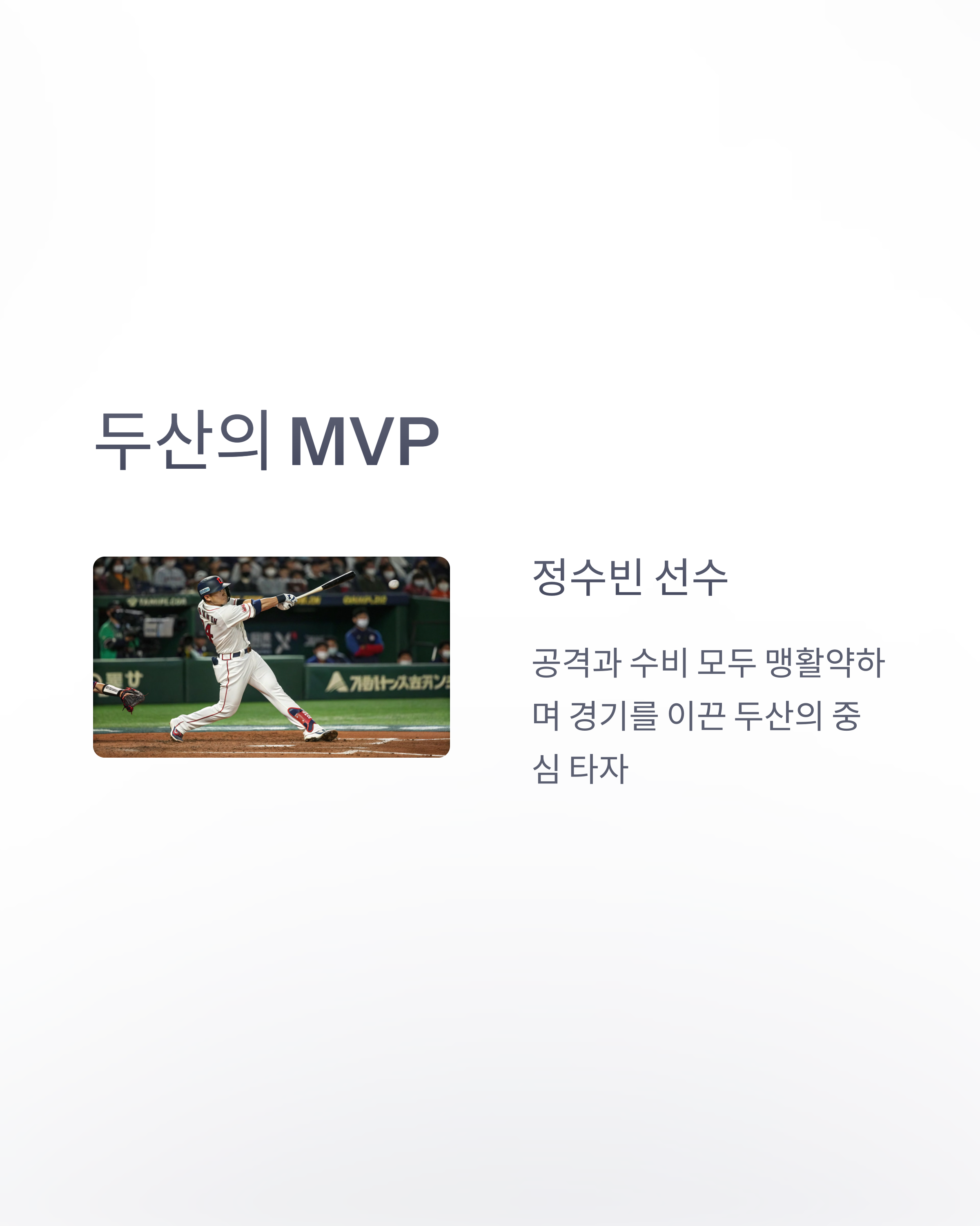 - “정수빈 살아있네~ 클래식한 리드오프의 진수!”