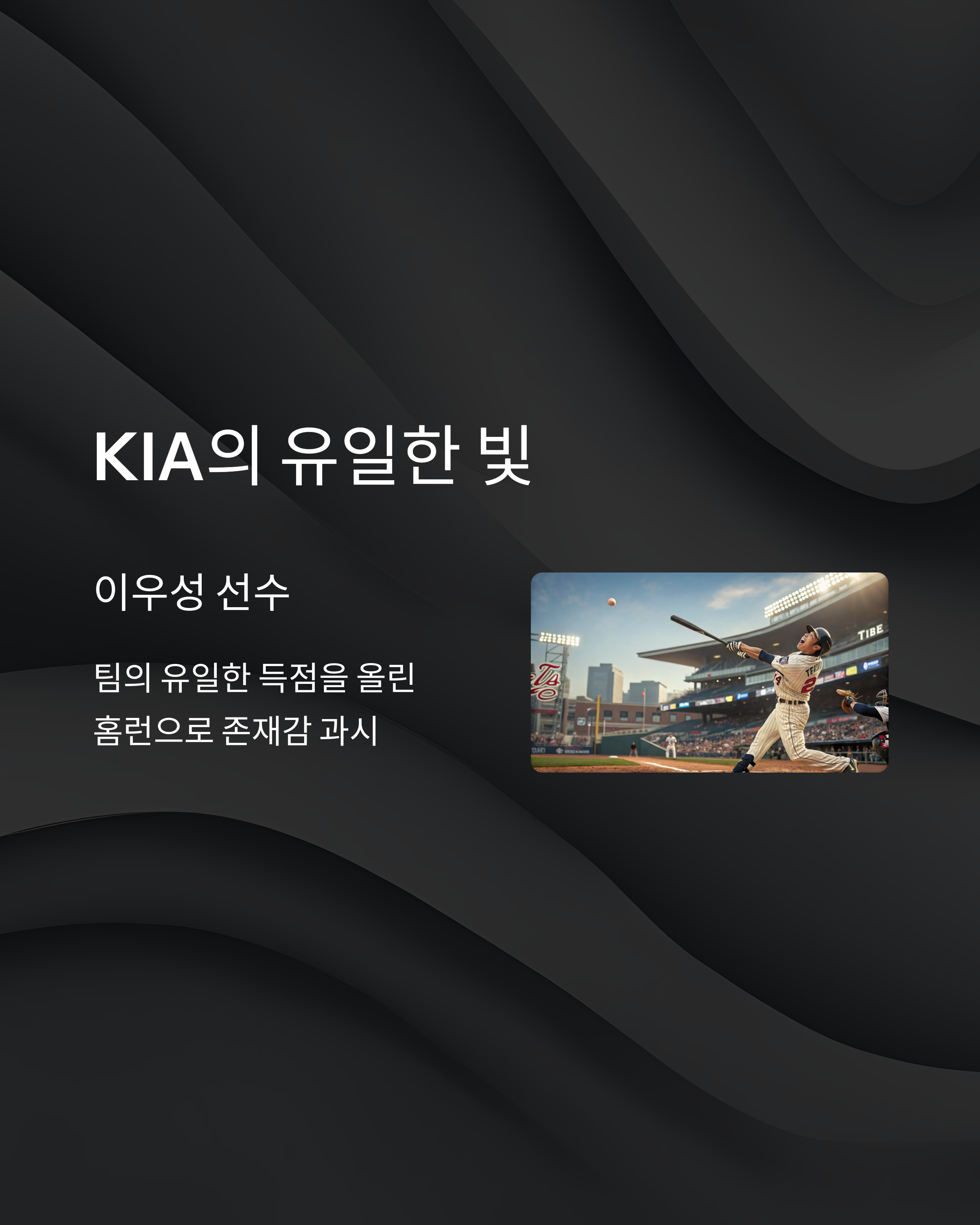 KIA는 전체적으로 침묵했지만 몇몇 인상 깊은 장면이 있었습니다. 특히 이우성 선수의 홈런이 팬들에게 작은 위안을 주었죠.
