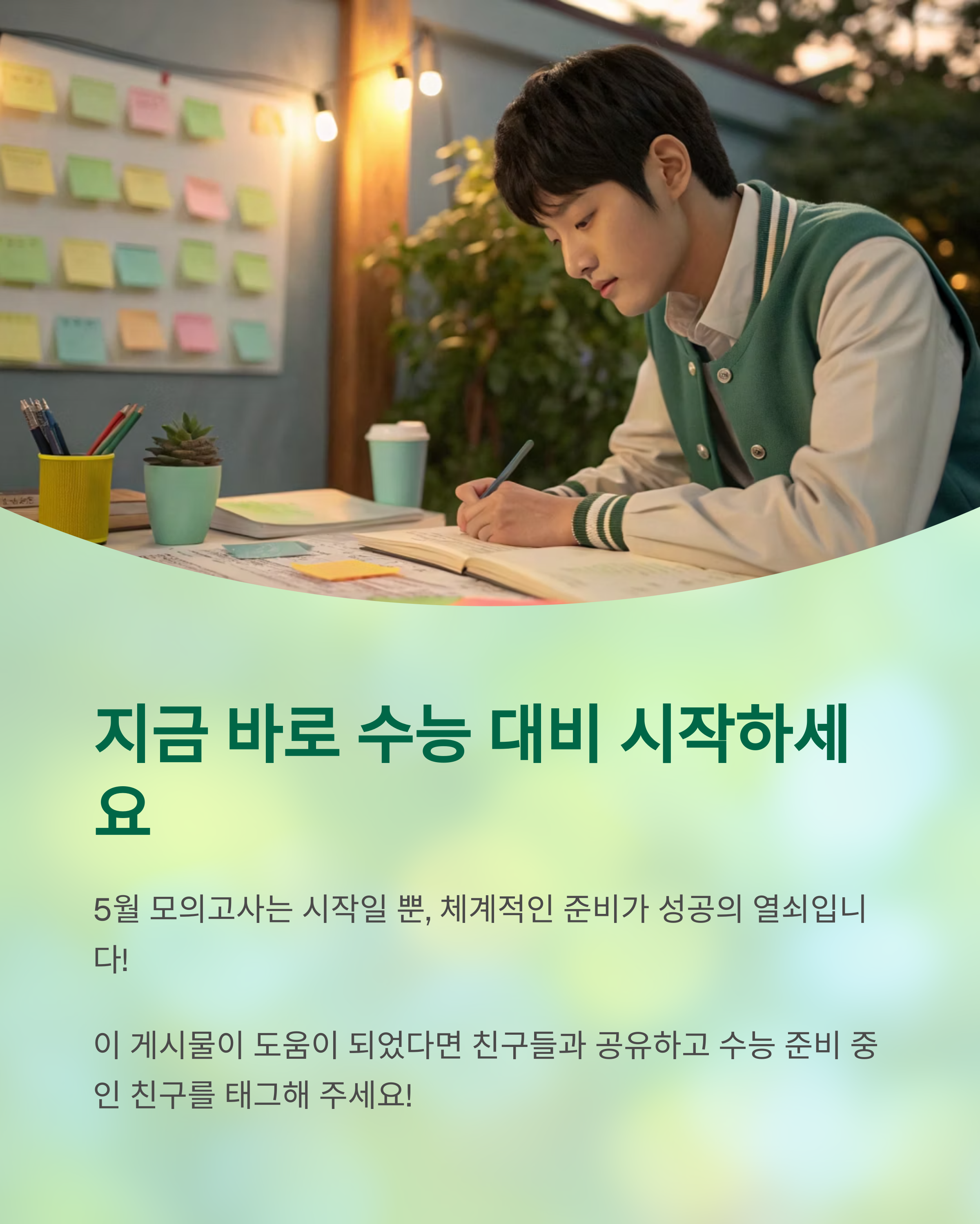 오늘 5월 모의고사를 치른 모든 수험생 여러분 정말 수고 많으셨습니다. 저희 아이와 함께 나눈 분석을 정리하며, 조금이라도 도움이 되고자 이 글을 작성했습니다. 수능까지 앞으로 남은 시간 동안, 오늘의 경험을 바탕으로 더 정교한 전략을 세워보세요. 다음 모의고사 리뷰 및 여름방학 학습 플랜에 대해서도 이어서 공유드릴 예정입니다.