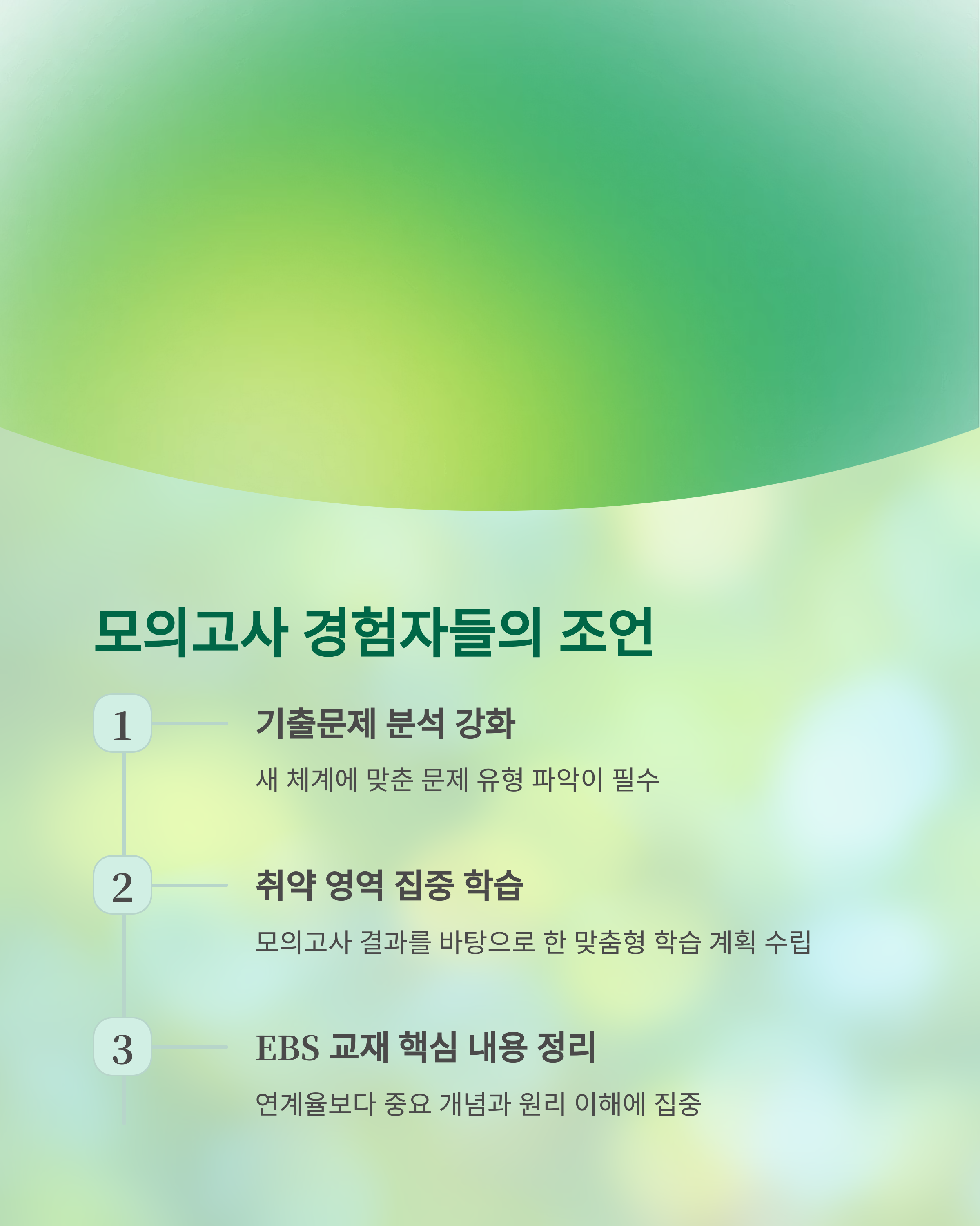 2025년 모의고사에서는 EBS 교재 연계율 50% 정책이 여전히 유지되었지만, 단순 암기형 연계가 아닌 ‘개념 확장형 간접 연계’ 방식이 중심이었습니다. 특히 국어와 영어에서 해당 경향이 두드러졌습니다.