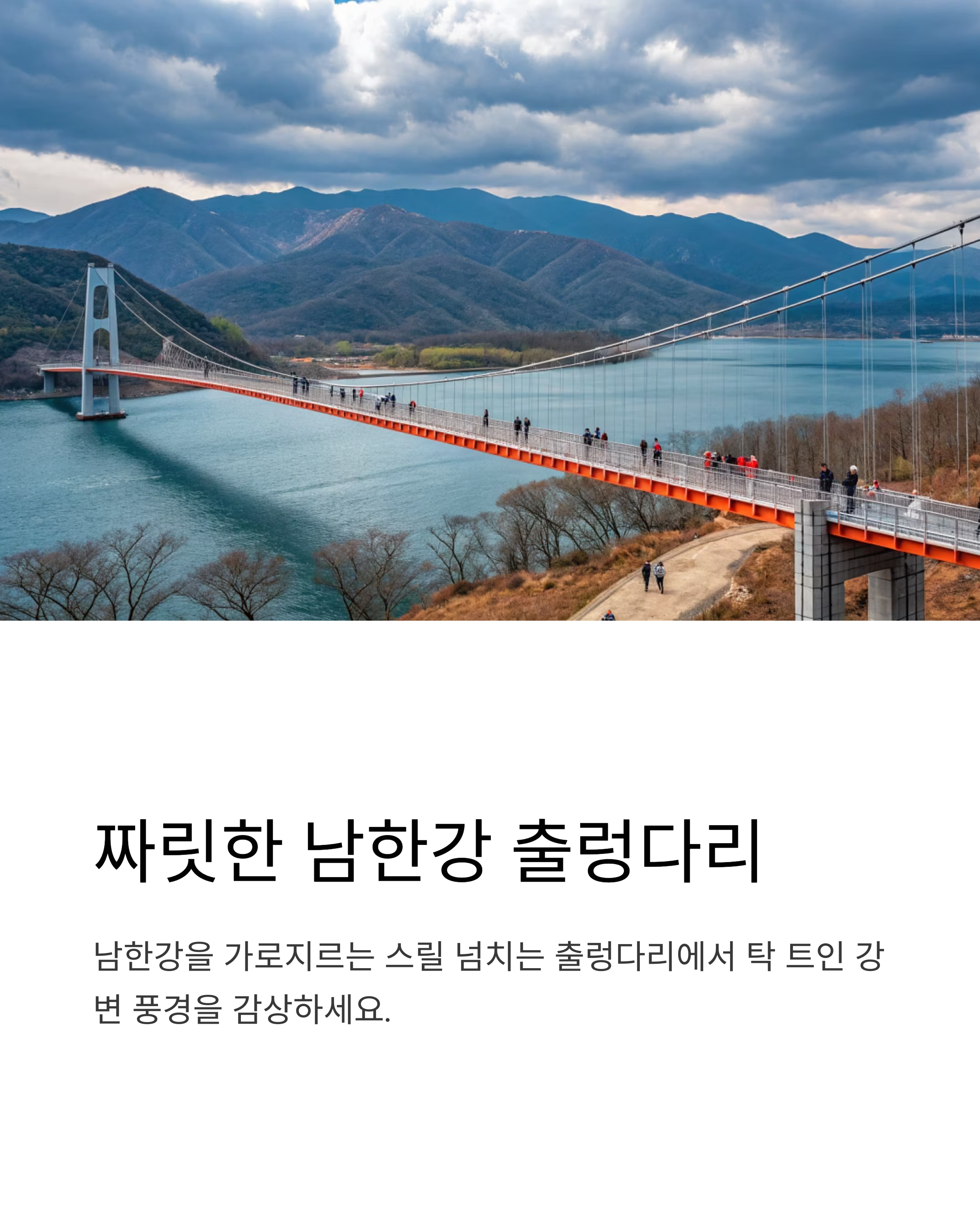 - 총길이 약 280m, 국내에서 손꼽히는 규모의 보도 전용 현수교