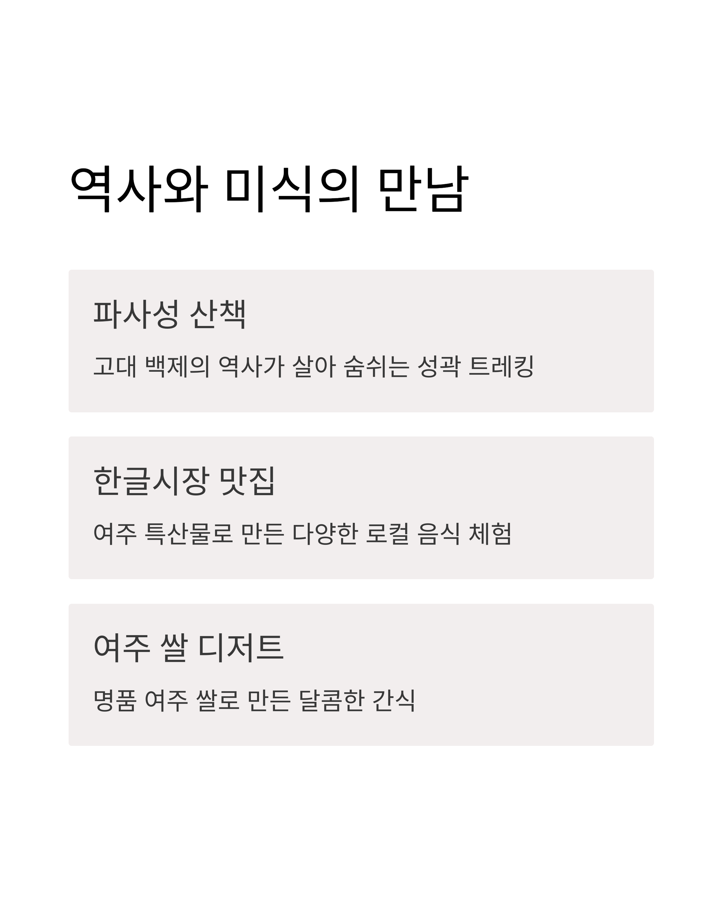 - KTX 여주역 하차 후 시내버스 또는 렌터카 이동 추천