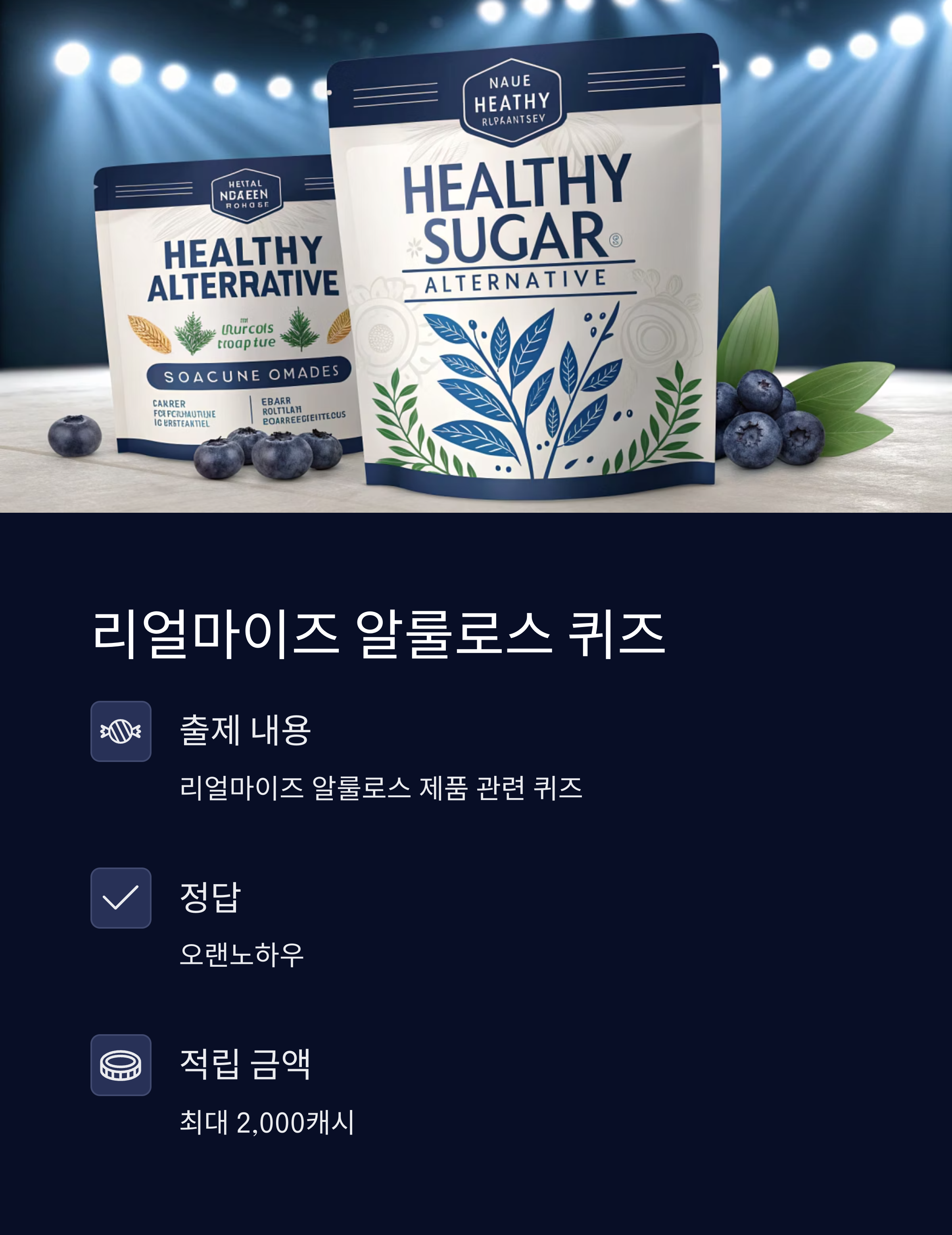 오늘 퀴즈 중에서도 리얼마이즈 알룰로스 문제는 단연 돋보였습니다. 문제는 이렇게 나왔죠. “리얼마이즈 알룰로스는 키토선생만의 OO OOO와 최상급 천연감미료를 추가하여, 설탕보다 더 깊고 풍부한 달콤함을 만들었습니다. 빈칸은?” 바로 오랜노하우가 정답이었습니다!