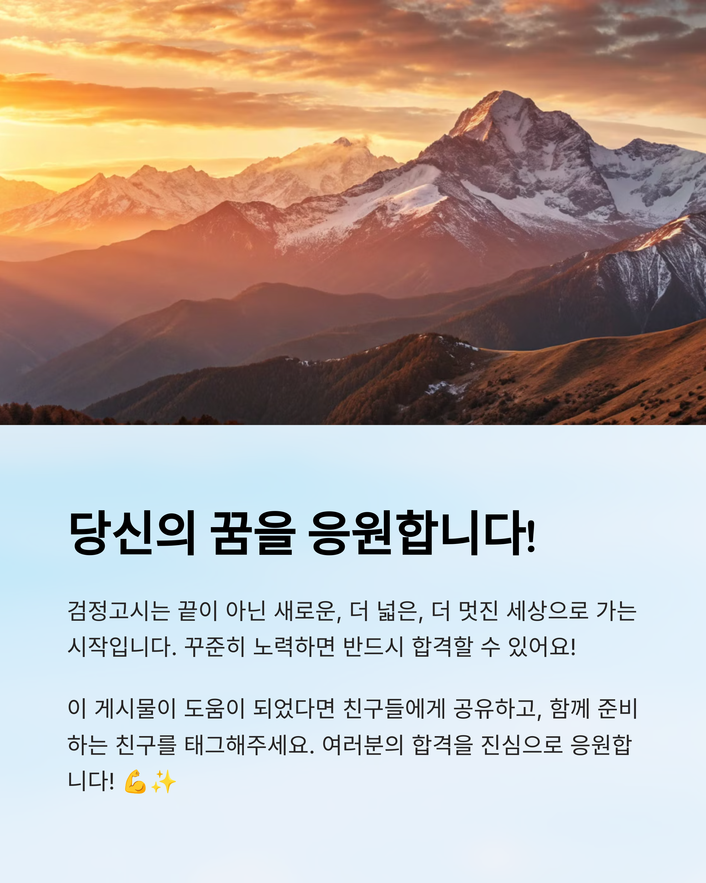 마음 단단히 먹고 검정고시에 도전하신 여러분, 진심으로 응원합니다. 길을 돌아가는 것 같아도 결국엔 제 길로 가고 있다는 걸 저는 제 경험으로 확신해요. 필요한 정보는 이 글로 다 챙기셨다면, 이제는 움직일 시간입니다. 혹시 궁금한 점이나 공유하고 싶은 이야기 있으시면 댓글로 남겨주세요. 함께 걸어가는 마음으로, 꼭 응원하겠습니다!