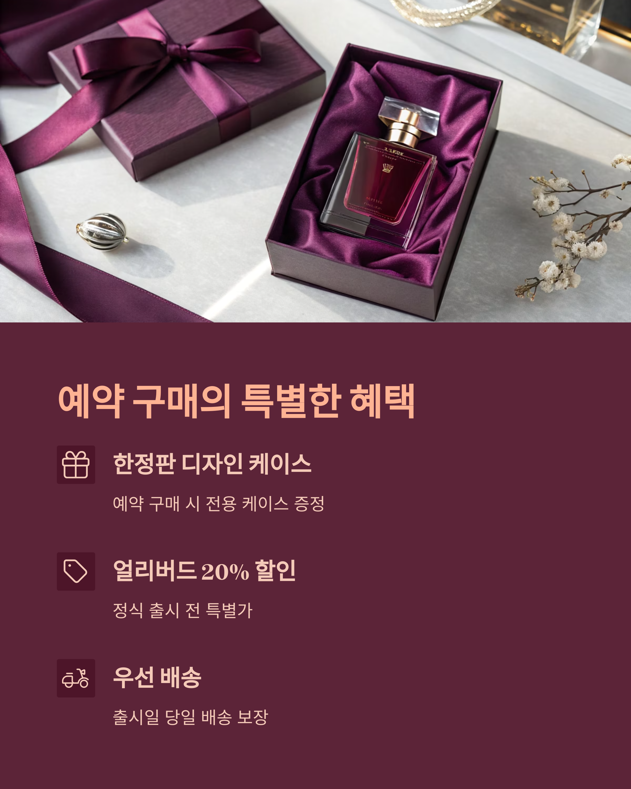 | 향 조합 | 화이트 머스크 중심의 부드러운 향 | 플로럴 계열, 강한 발향 |