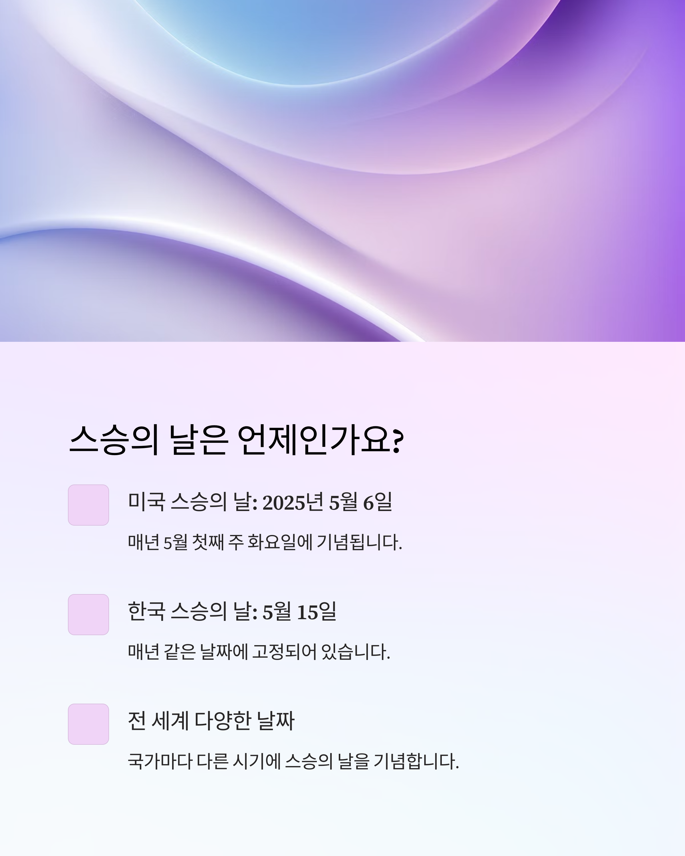 2025년 스승의 날을 맞아, 다시 한 번 모든 교사분들께 깊은 감사의 말씀을 전합니다. 이 글이 스승의 날의 의미를 되새기고, 감사를 표현하는 데 도움이 되었길 바랍니다. 앞으로도 변화하는 교육 환경 속에서 스승의 날이 더욱 풍요롭고 따뜻한 축제로 자리 잡기를 기대합니다. 2026년에는 또 어떤 새로운 방식으로 감사의 마음을 전하게 될지 벌써부터 기대되네요!