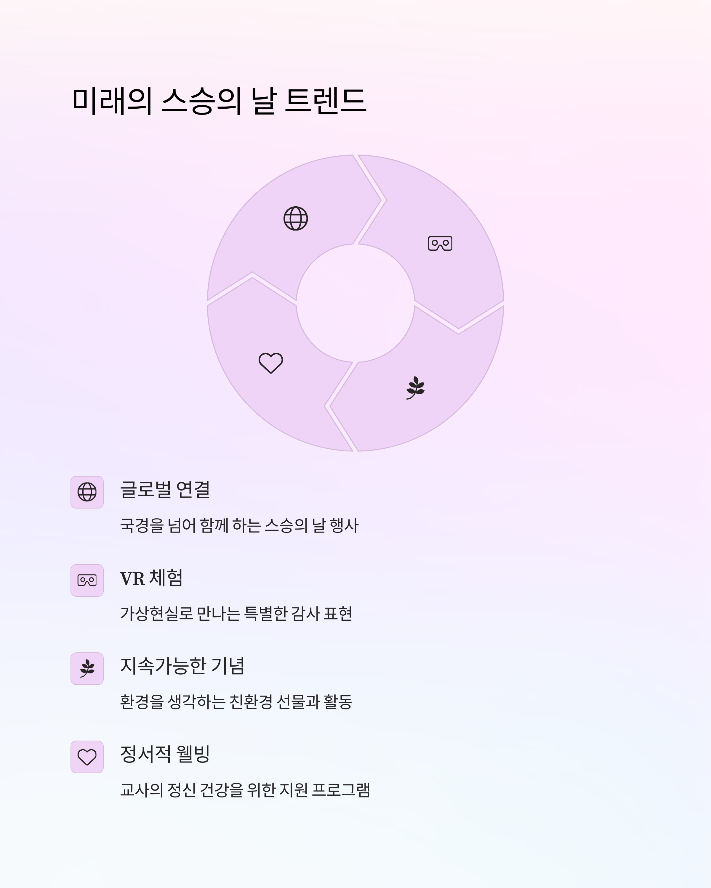 교육 환경이 빠르게 변화하면서, 스승의 날 역시 더 다양한 방식으로 진화하고 있습니다. 앞으로는 다음과 같은 변화가 예상됩니다: